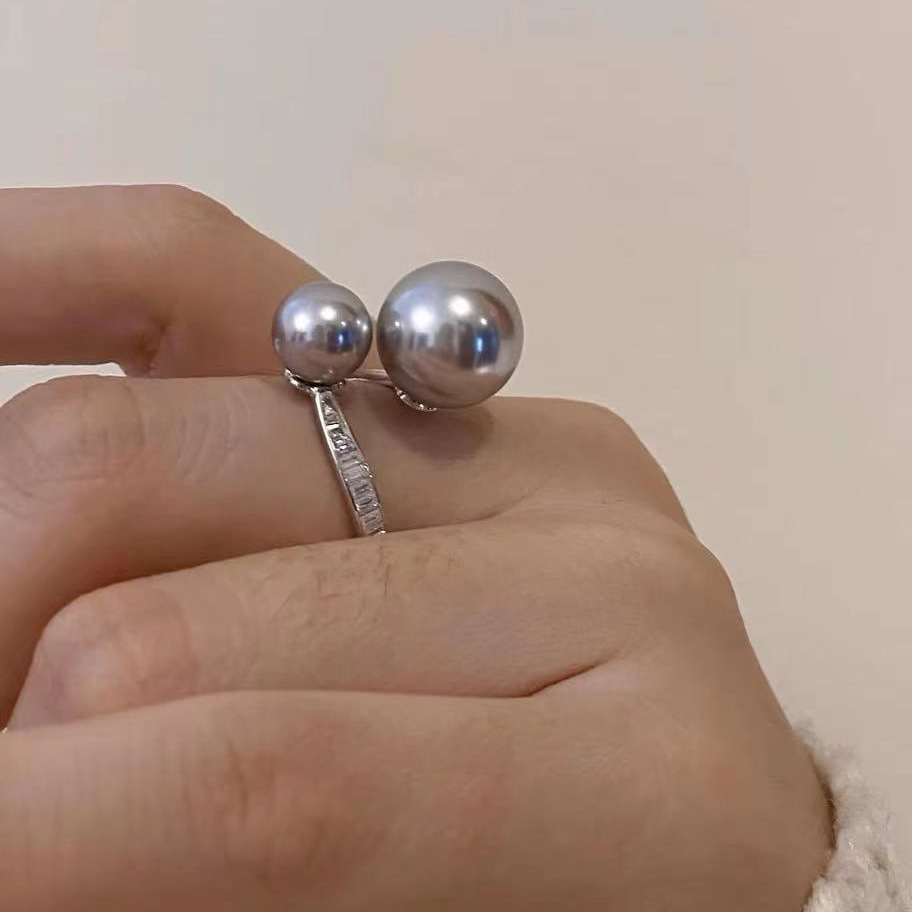 フルドリルの真珠の指輪の女性の大衆の設計の高級感の気質のファッションの軽い豪華な双真珠はリングを調節することができます。