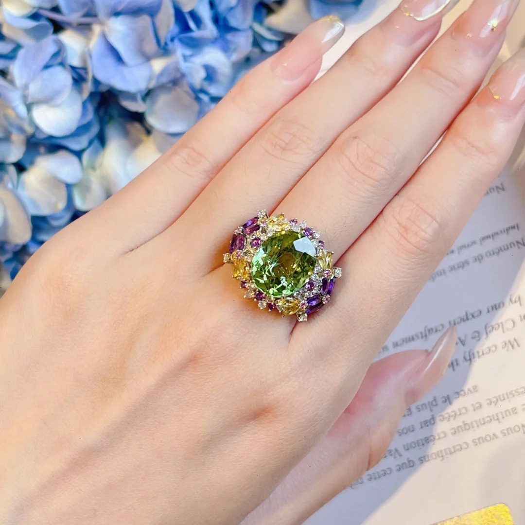 ネットの赤いロマンチックな彩宝の指輪の女性の口の小さい大衆の設計は18kの金の清新なミントの緑の彩宝の指輪をめっきします。