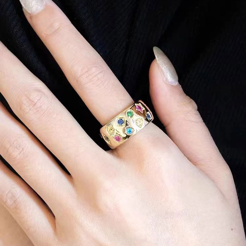 新型レトロ高級感彩宝黒ジルコン指輪女性開口食指戒ファッション個性大衆デザイン感潮