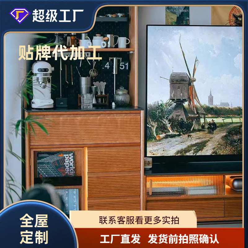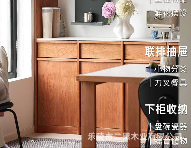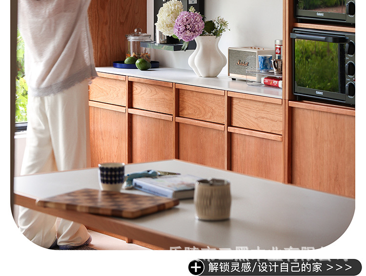 サイドキャビネット北欧岩板キャビネットロッカー全実木リビング一体壁展示キャビネット