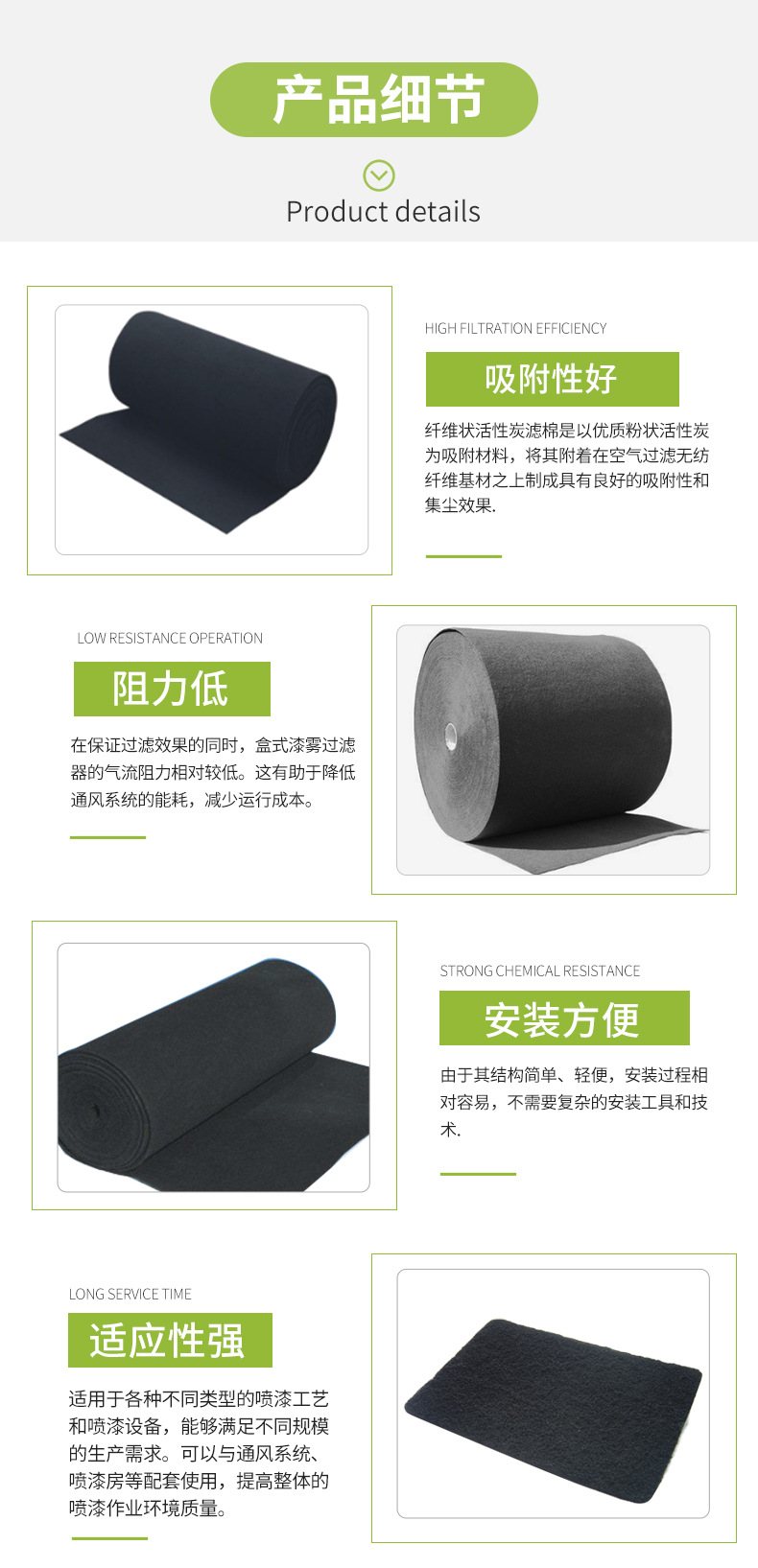 活性炭繊維綿炭素フェルト塗装室排ガス水処理ゴミ箱活性炭ろ過綿