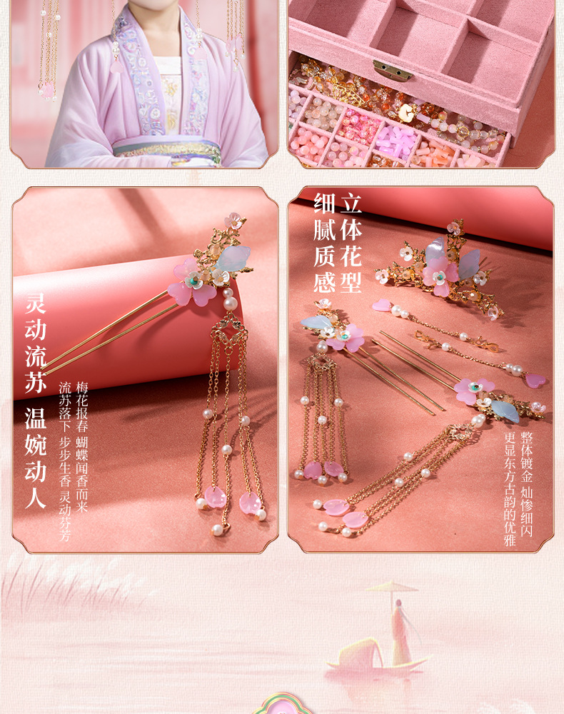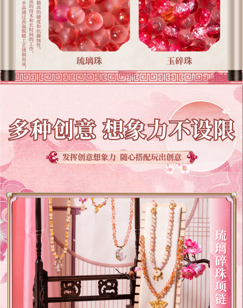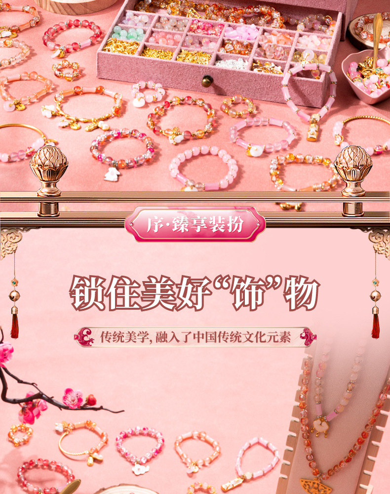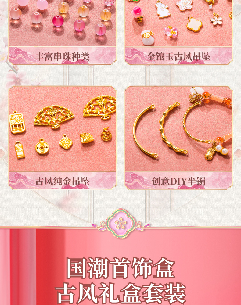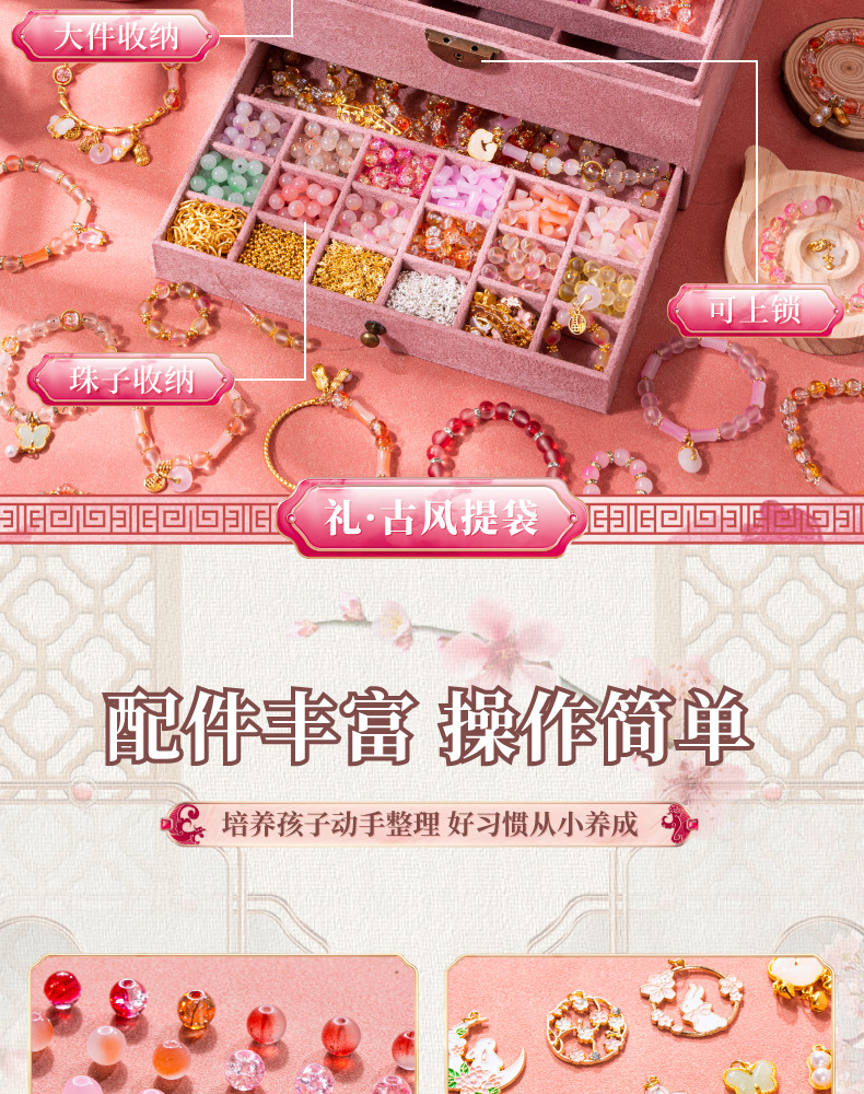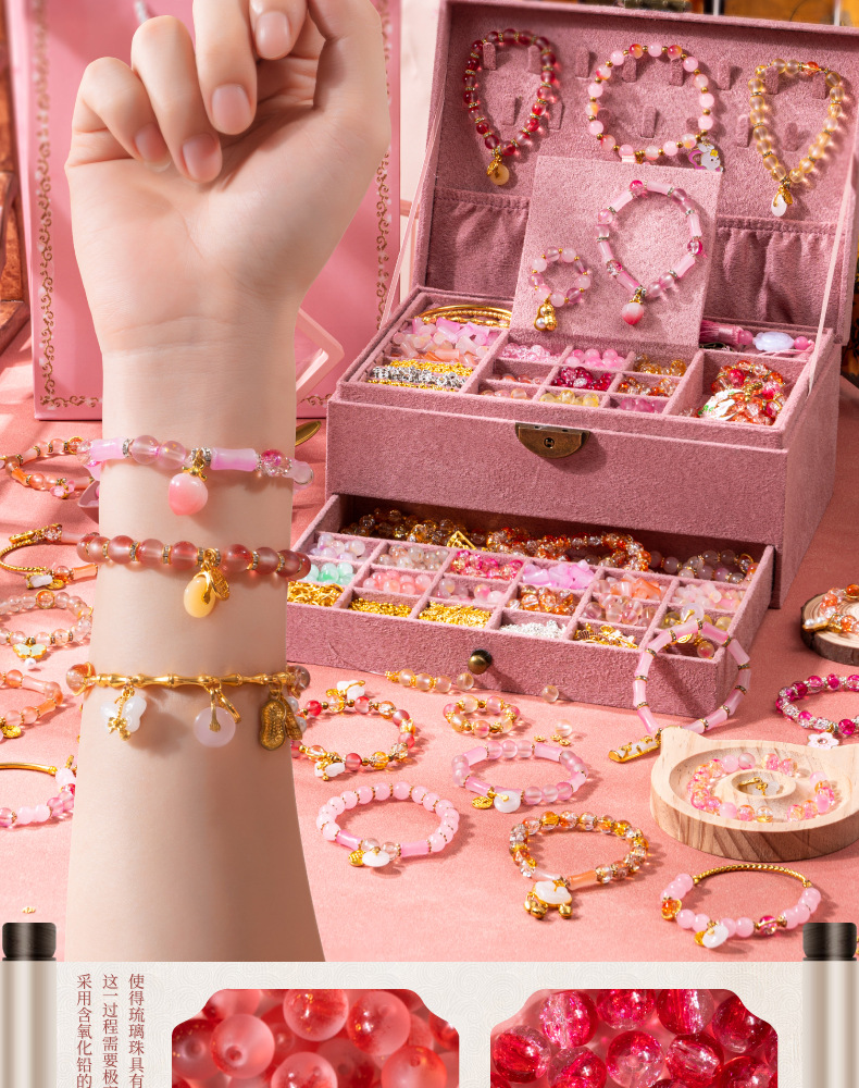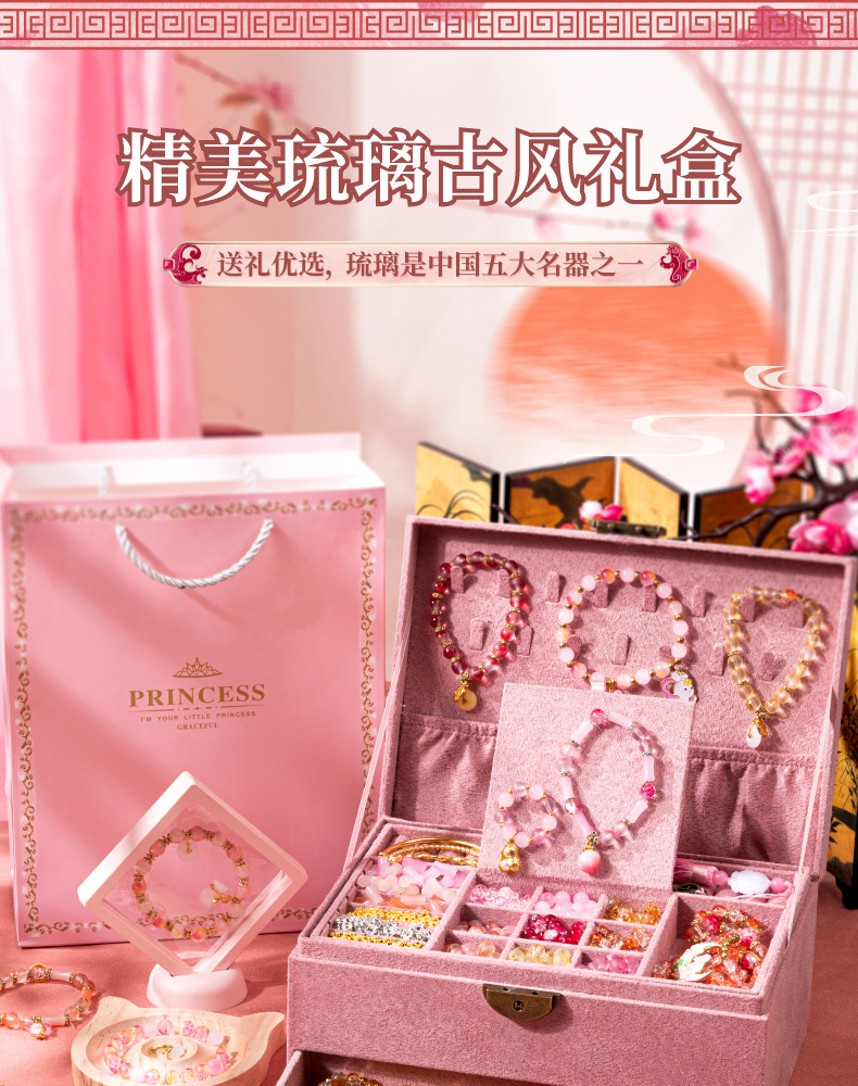 厂家儿童手链串珠礼盒女孩手工diy材料古风琉璃玩具套装生日礼物