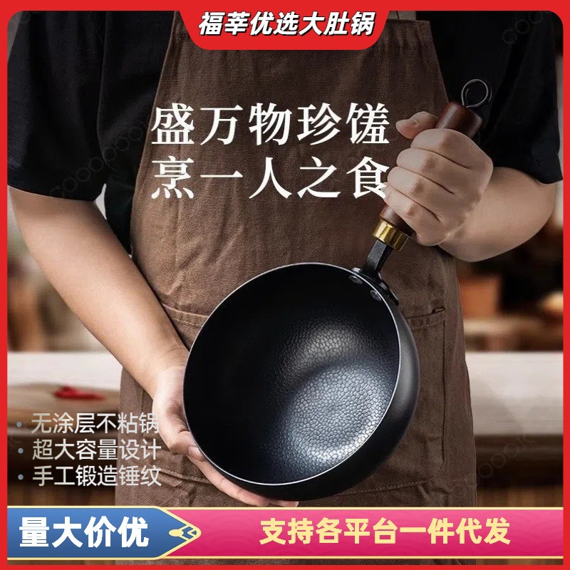 大容量鍋、無塗装、炒め物・煮物用鍋、焦げ付き防止、厚底、油煙なし、24CM炒め鍋、手作り