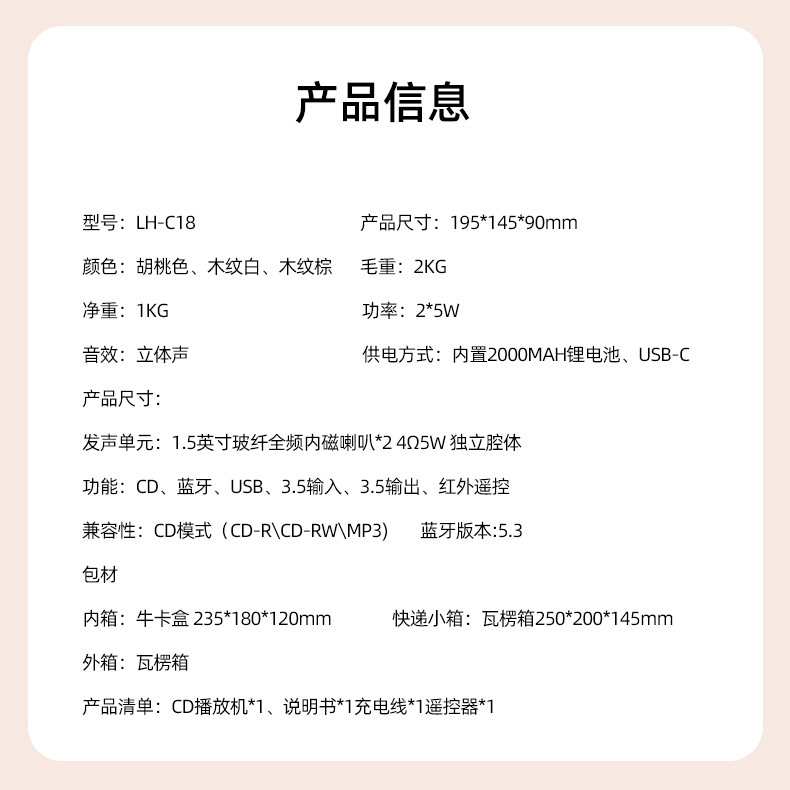 复古礼物CD机 CD播放器 蓝牙音响 音乐专辑播放器