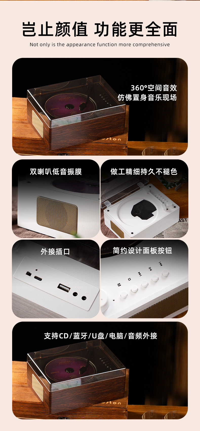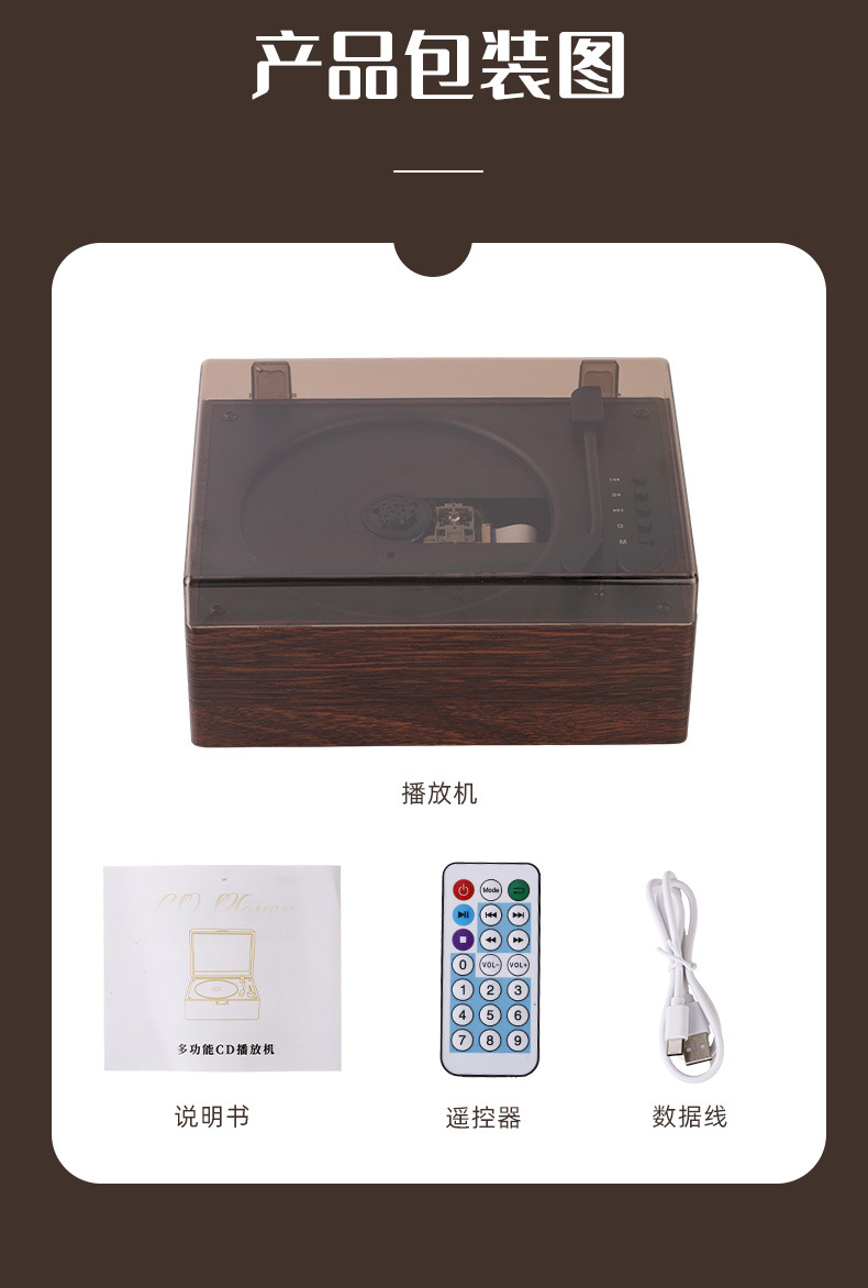 新款复古cd播放机蓝牙专辑音响一体机播放器CD机生日礼物跨境爆款