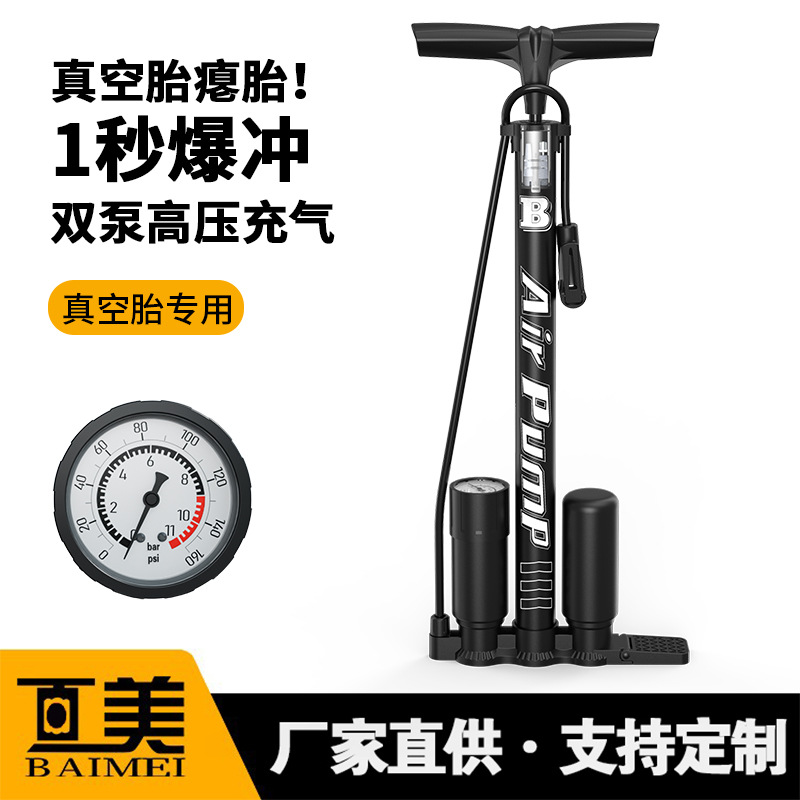 百美爆充打气筒新款高压打气筒电动车自行车真空胎通用打气筒修补