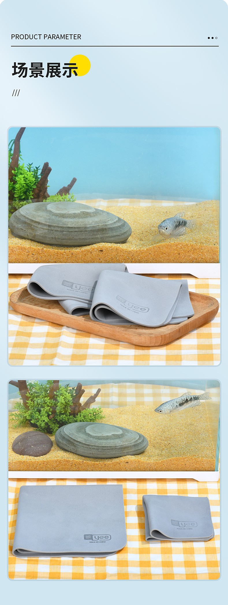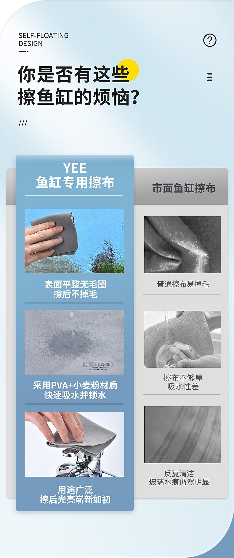 Yee水槽の布ガラスを拭きます。水の跡を残さずに布を拭きます。