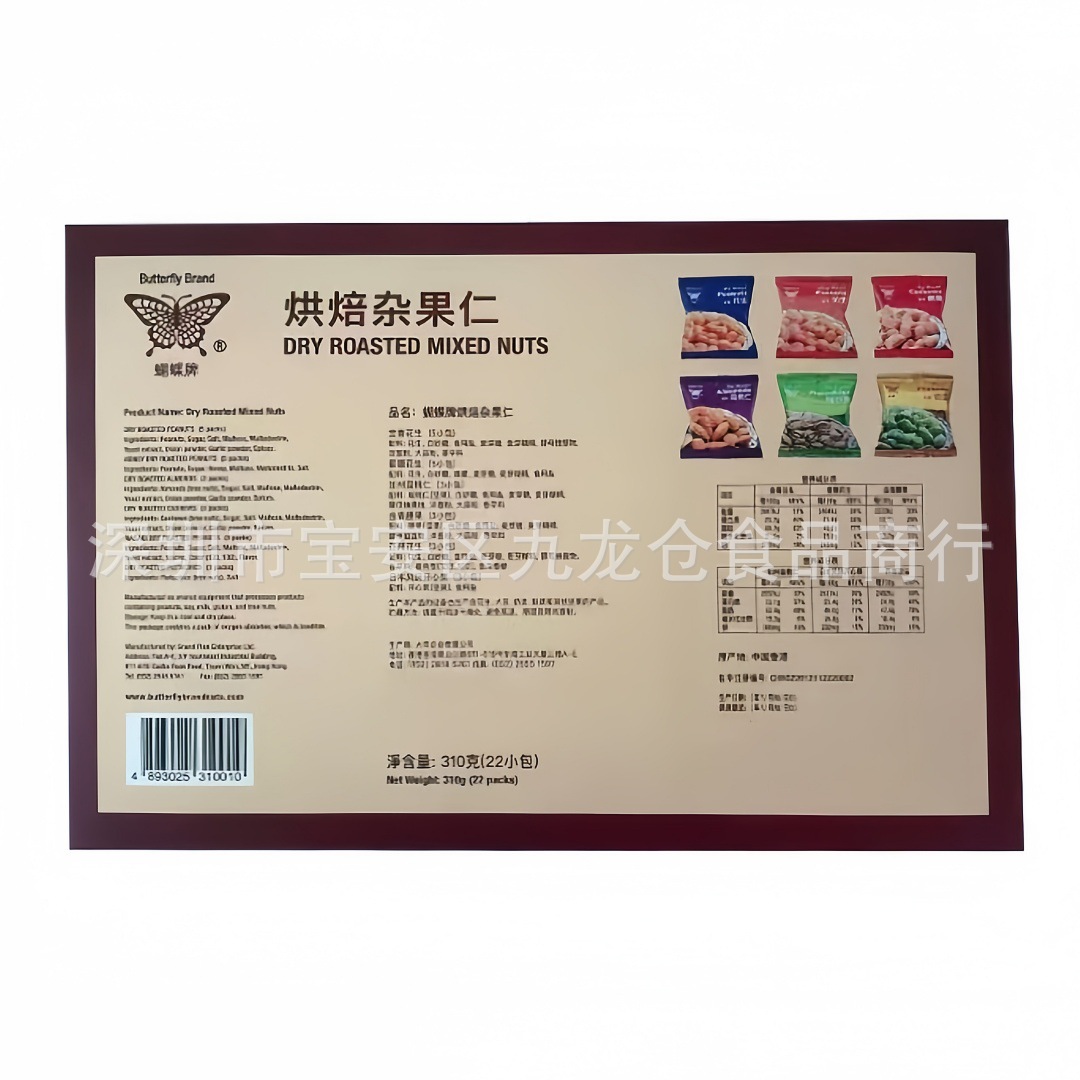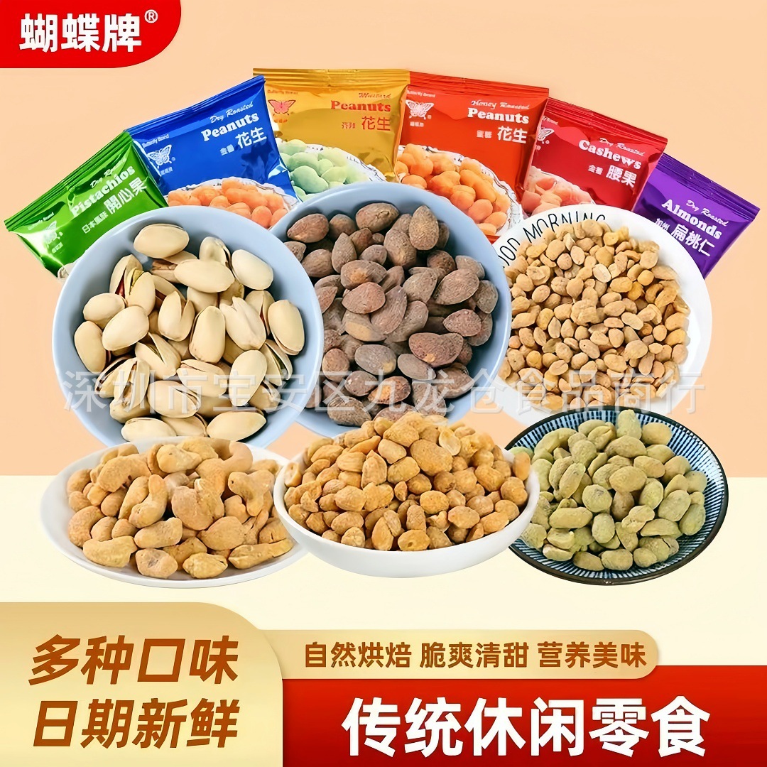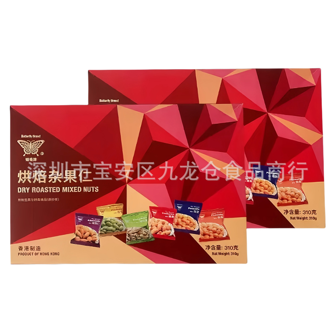 蝴蝶牌烘焙杂锦果仁腰果开心果杏仁花生坚果炒货节日年货伴手礼品礼盒休闲零食品310g 一箱20盒批发