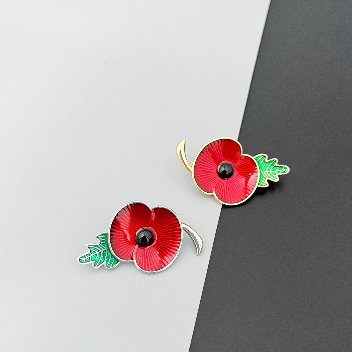 英国红色罂粟花滴油珐琅工艺徽章英伦风西装领针时尚百搭毛衣配饰
