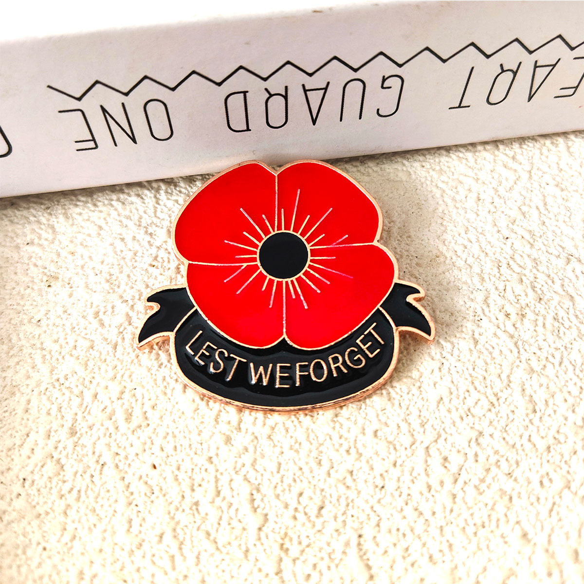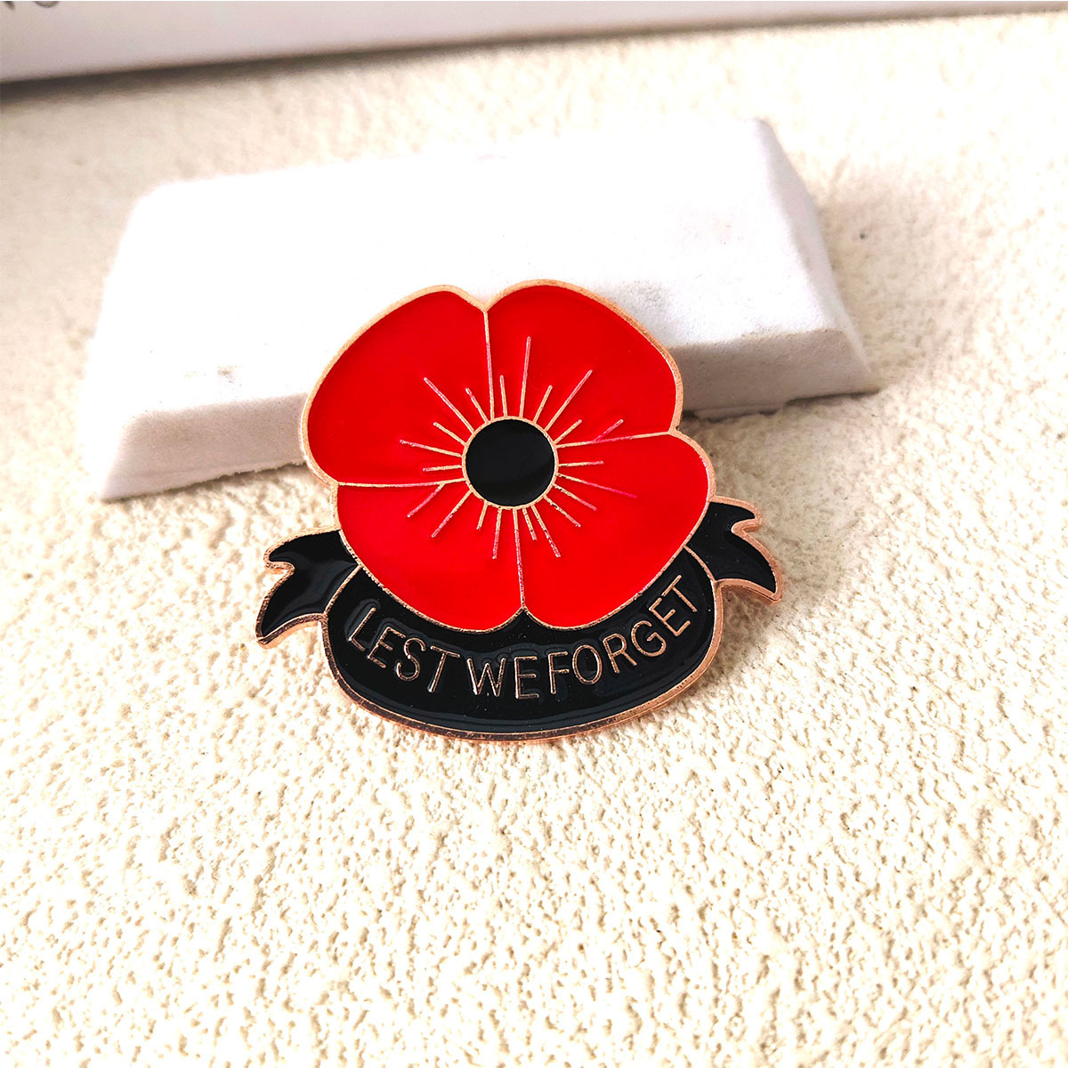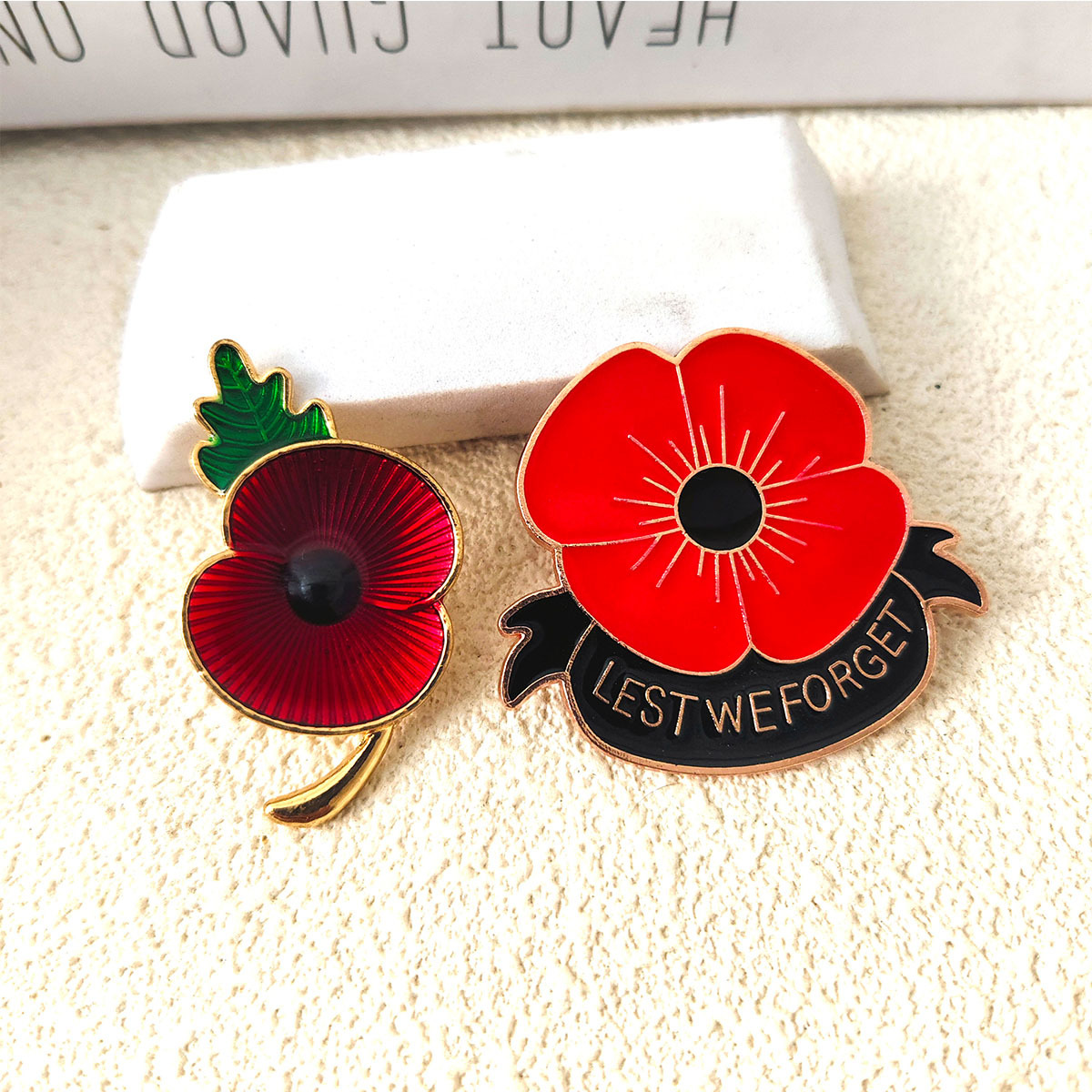 外国貿易の爆発金はイギリスの記念の水ドリルのピンと油を入れてケシの赤い花のブローチの現物を入れてバッジのピンを供給します。