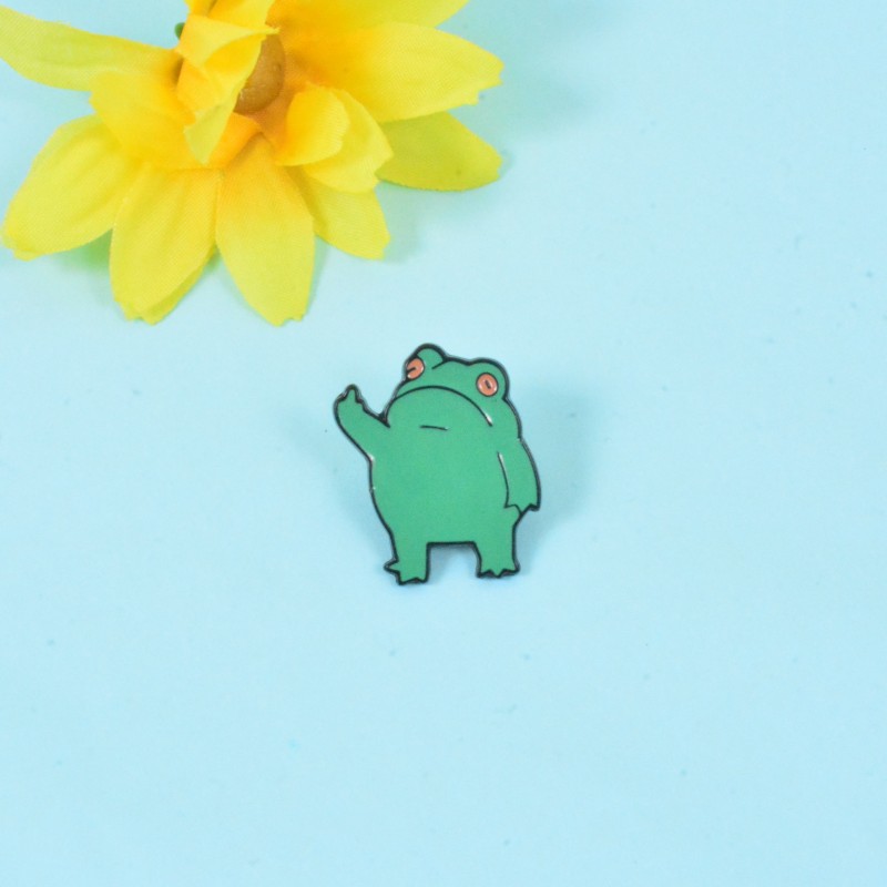 お笑い縦中指カエルブローチ漫画塗装エナメル中指カエルピン防犯スポット卸売り