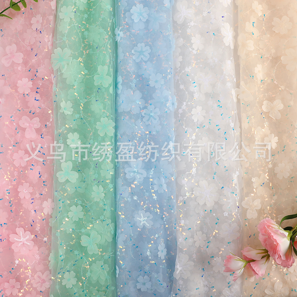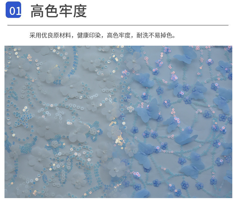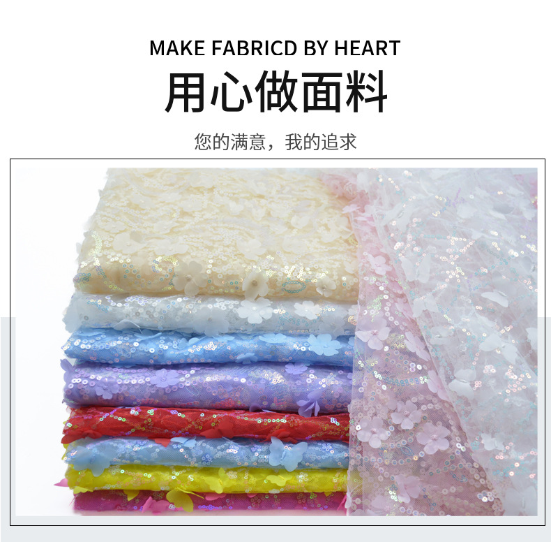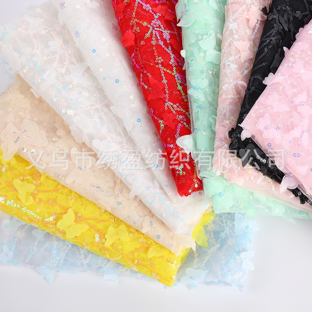 スポットスパンコール立体花生地蝶刺繍レースウェディングドレスメッシュ背景装飾子供服ファッション生地
