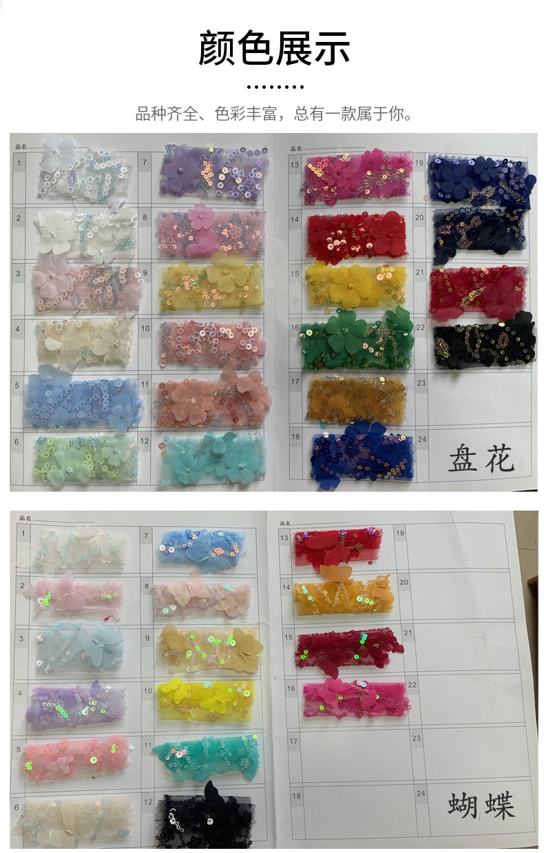 激光立体蝴蝶亮片面料婚纱礼服pet绣花头饰工艺批发亮片婚纱面料
