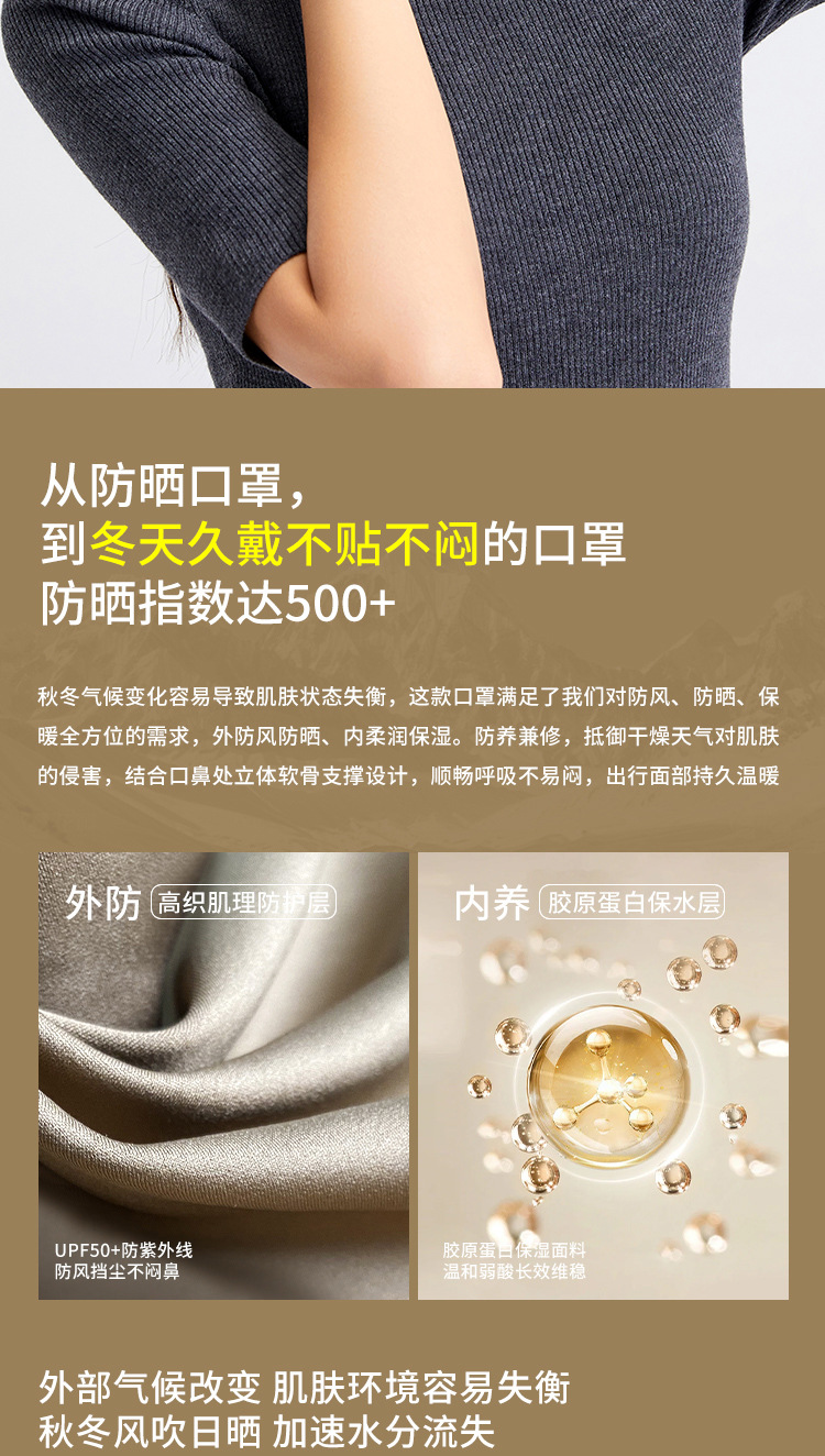 秋冬コラーゲン保温マスク女性高颜値美ラード通気日焼け止め防風防塵マスク男