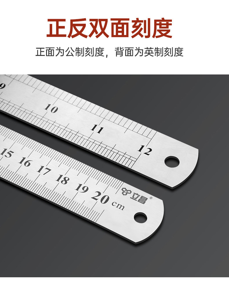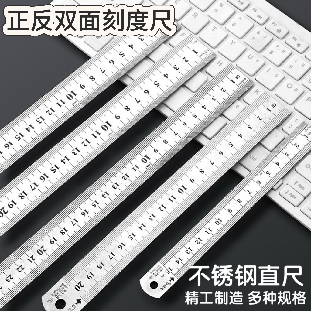 批发小鱼儿不锈钢直尺办公正反面刻度尺加厚多功能钢尺水平工具