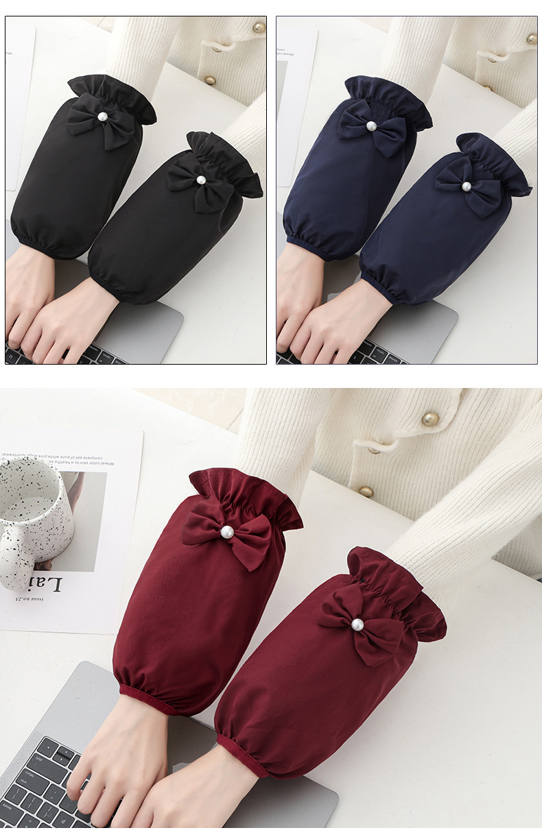 秋冬の新型蝶結びが可愛いショートタイプの防汚袖カバー女子成人学生の家庭での仕事は汚い手の袖を防ぎます。