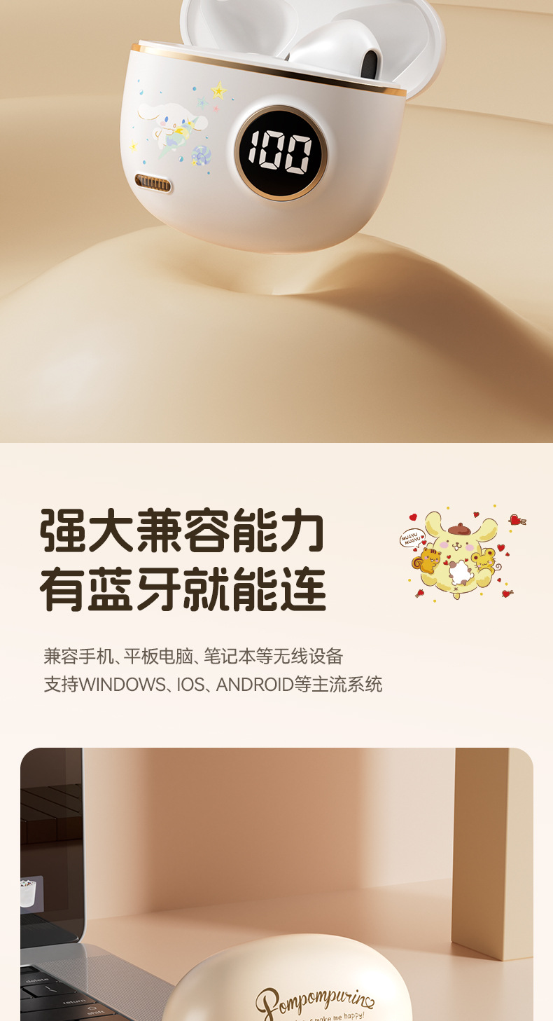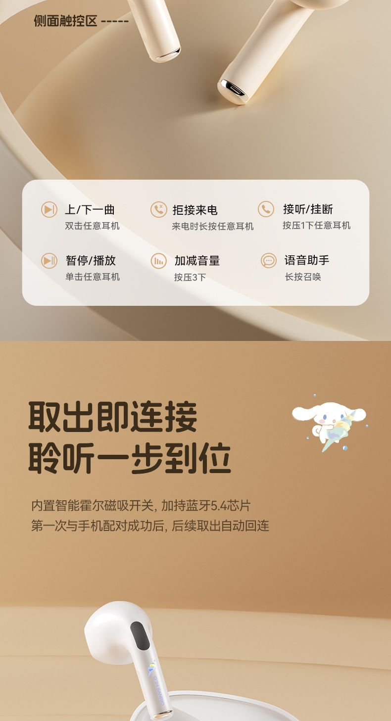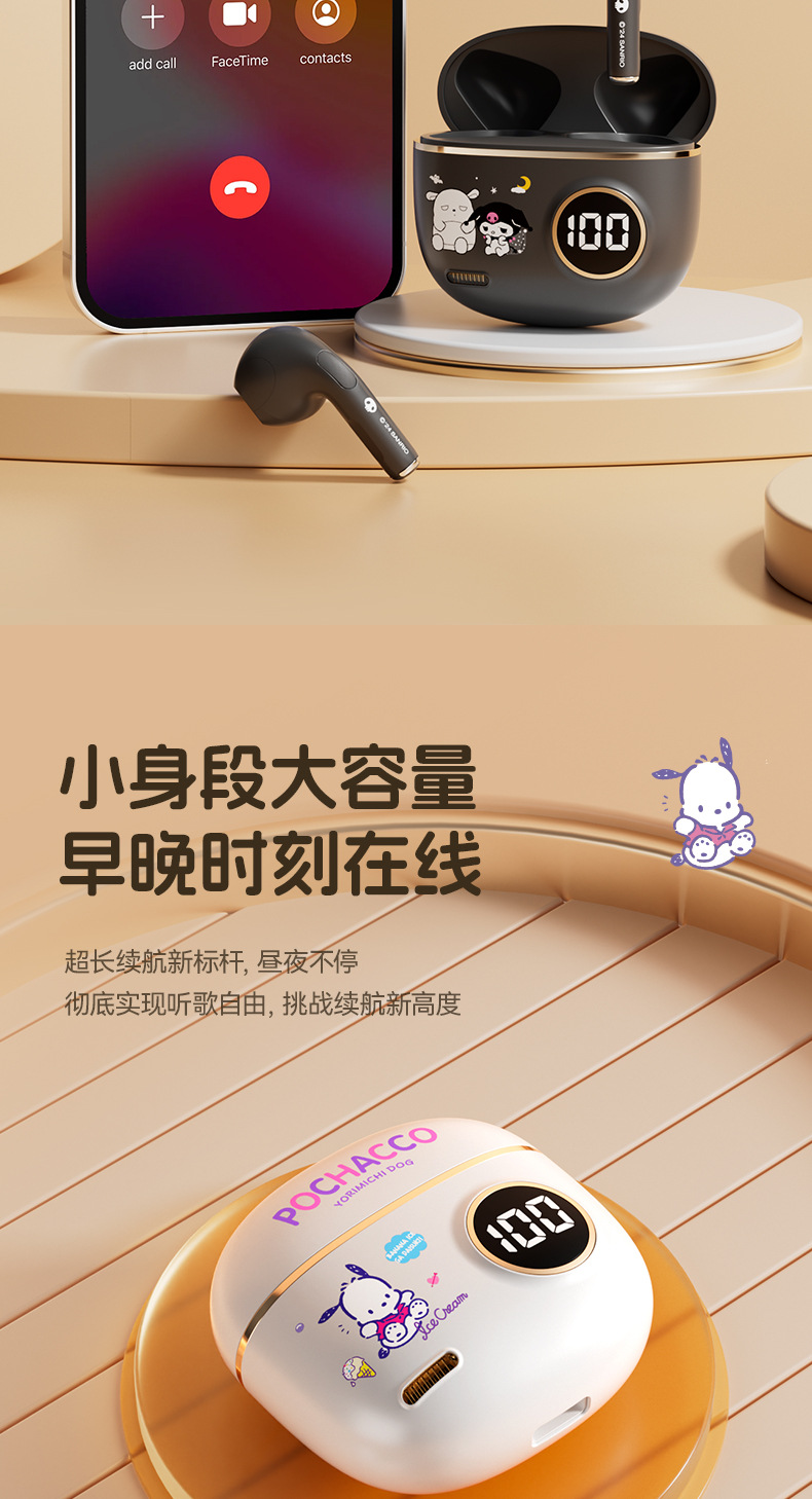 サンリオ正規ライセンスX68ワイヤレスbluetoothイヤホン睡眠イヤホン半入耳式高颜値ノイズ除去イヤホン