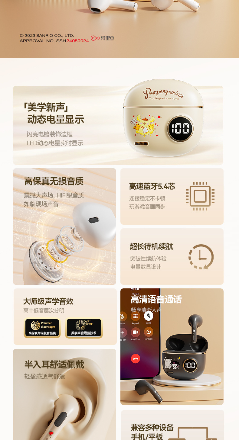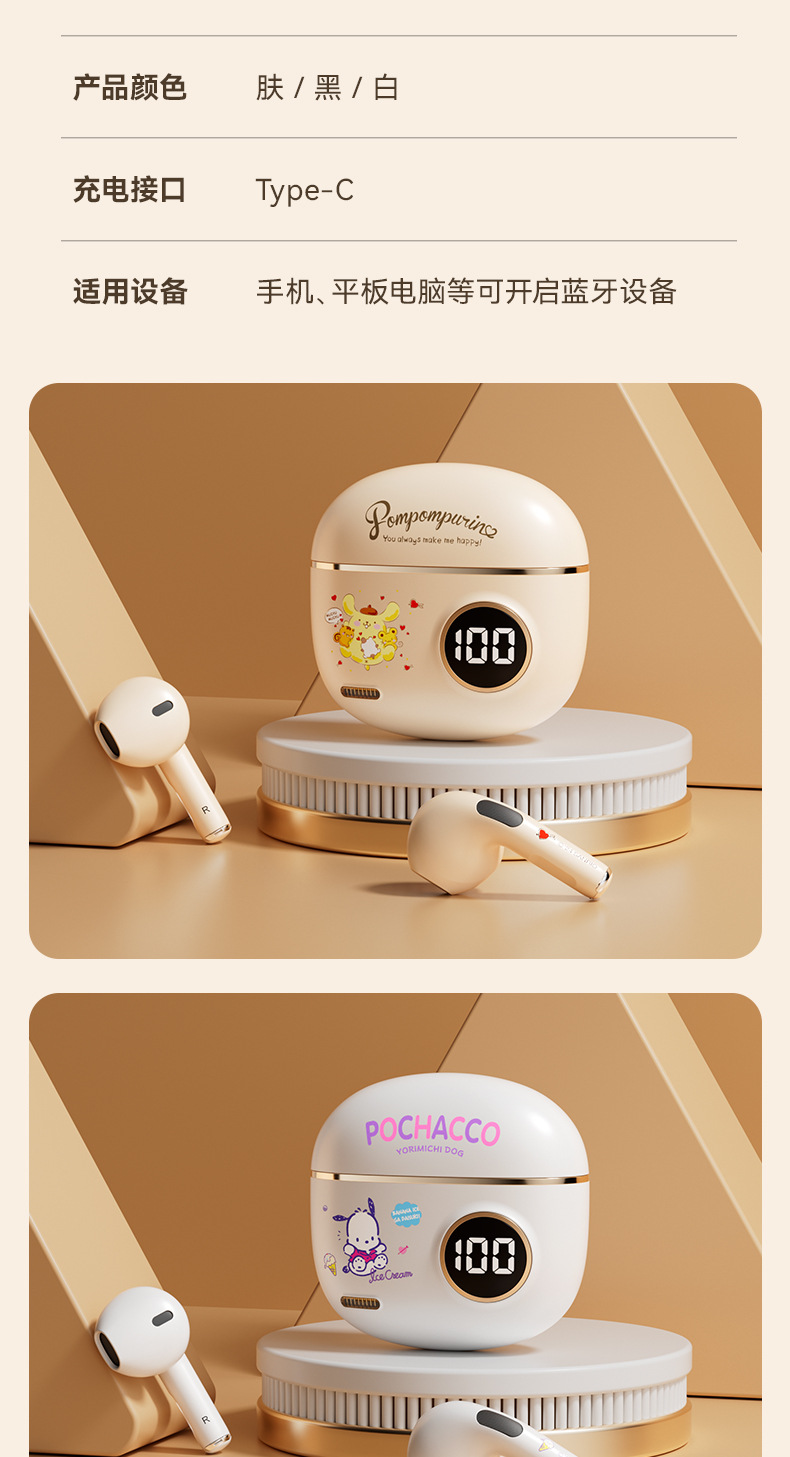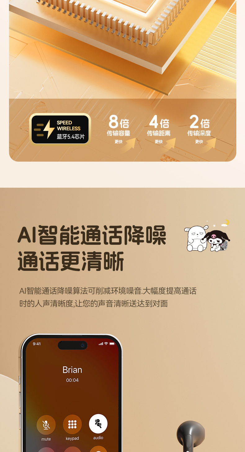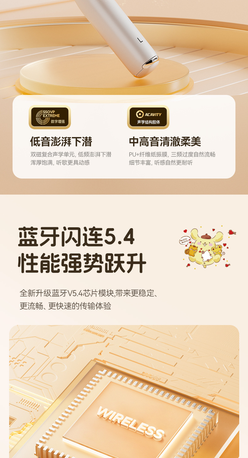 サンリオ正規ライセンスX68ワイヤレスbluetoothイヤホン睡眠イヤホン半入耳式高颜値ノイズ除去イヤホン