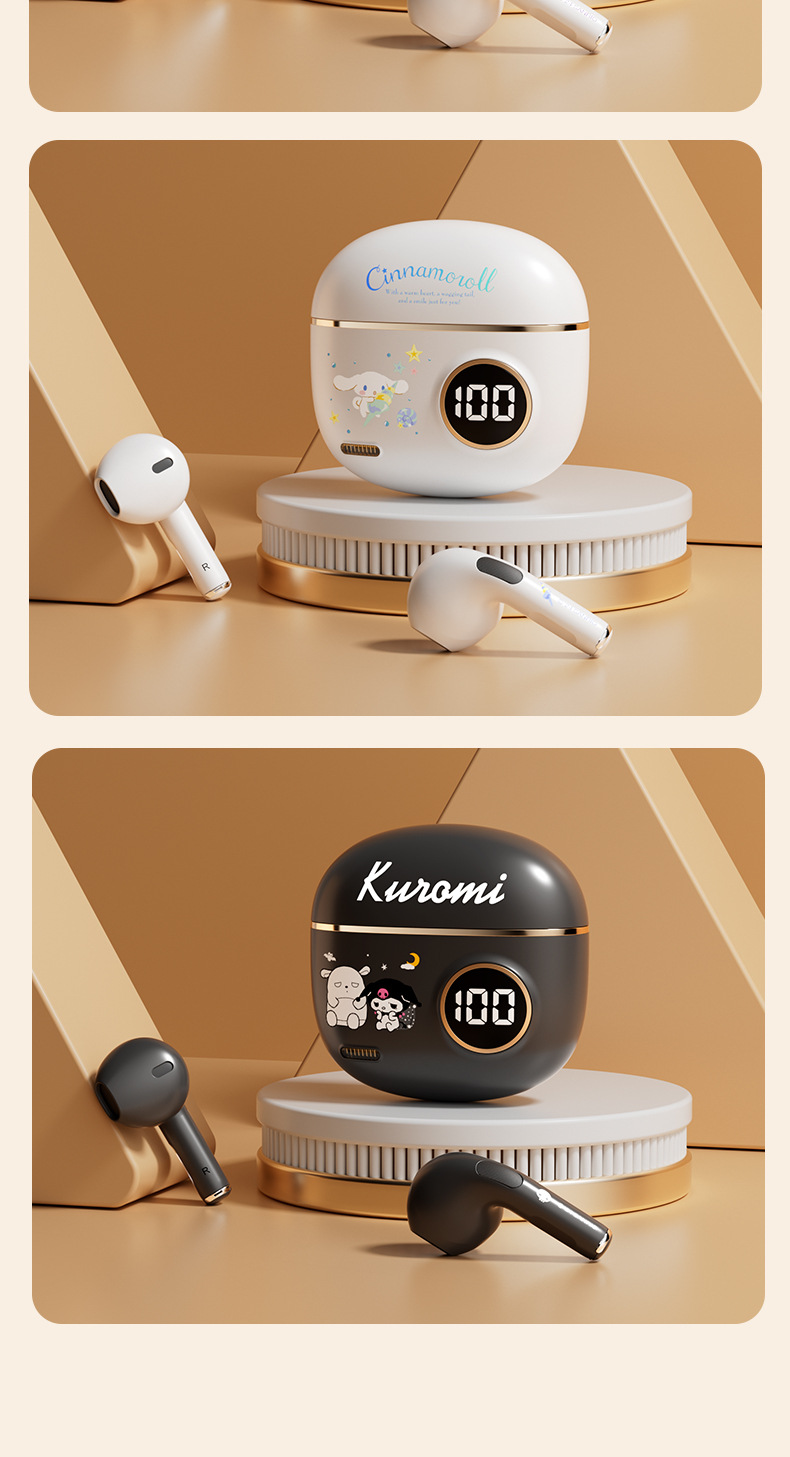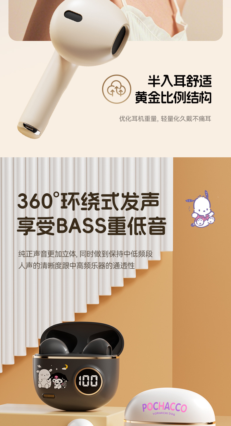 新型サンリオbluetoothイヤホン半入耳式かわいいアニメ受動騒音低減超長航続運動イヤホン