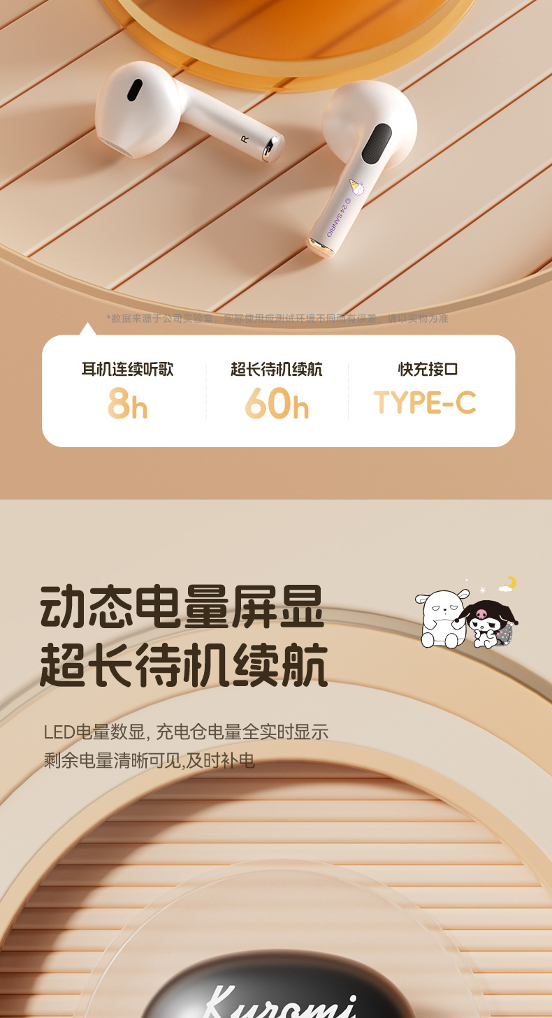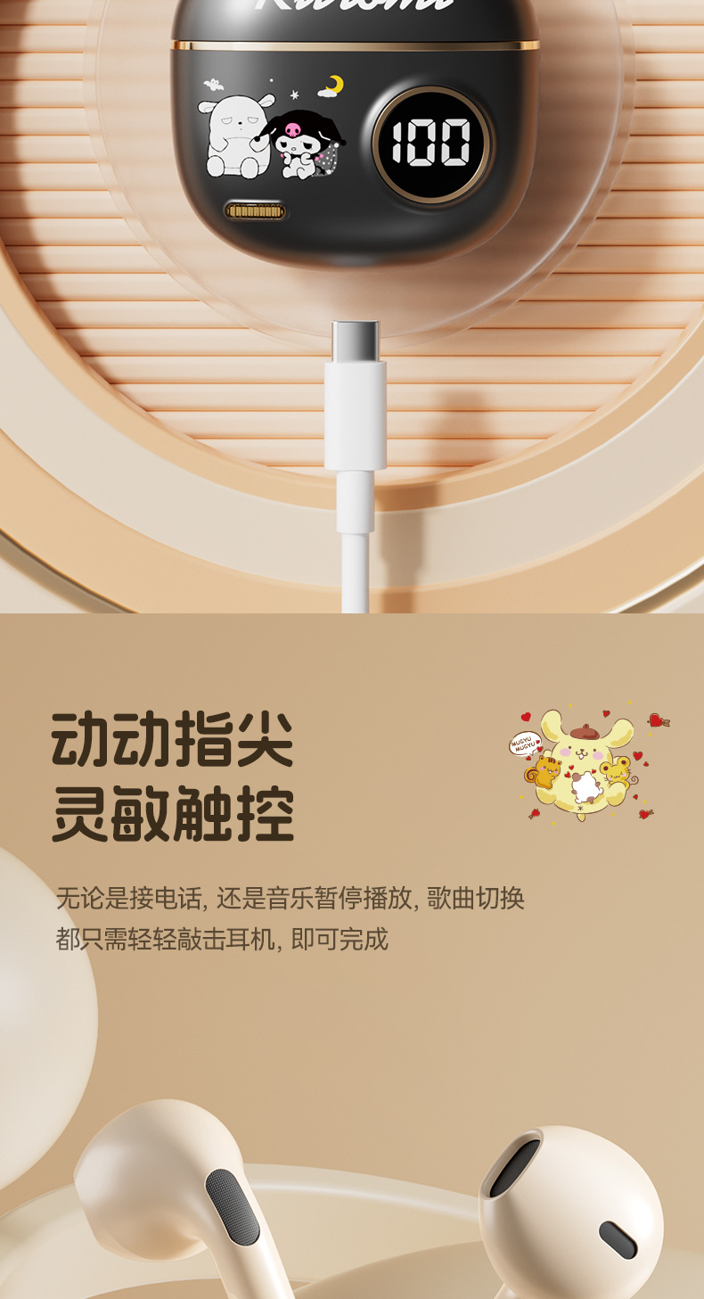 サンリオの新型ブルートゥースイヤホンQ1長尺航続無線騒音低減超可愛いスポーツイヤホン卸売り