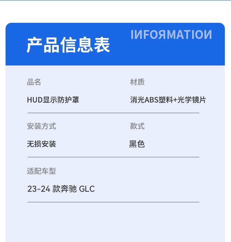 ベンツGLC専用ヘッド表示保護カバー計器HUD防塵カバー自動車内装アップグレード改造品部品