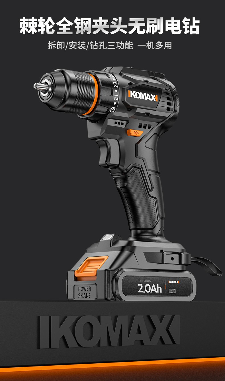 ブラシレス電気ドリル小型鋼砲二速充電インパクトドリルリチウム電気懐中電灯ドリル工業級多機能ミニピストル回転