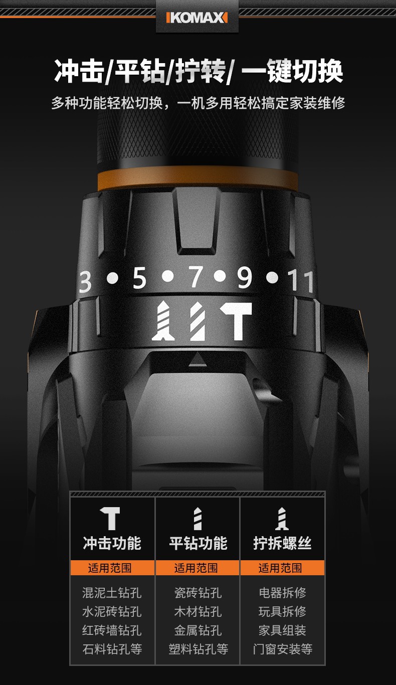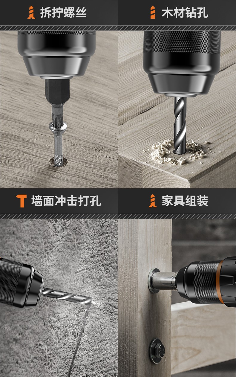 无刷手电钻打墙充电钻锂电家用小型冲击手枪打孔多功能电动螺丝刀