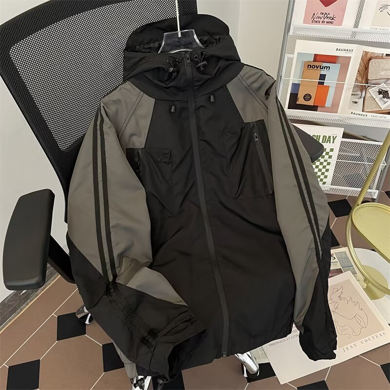 国境を越えたレトロな衝突色のつなぎ合わせは、春と秋の屋外機能防水二重レジャージャケットをつなぎ合わせた