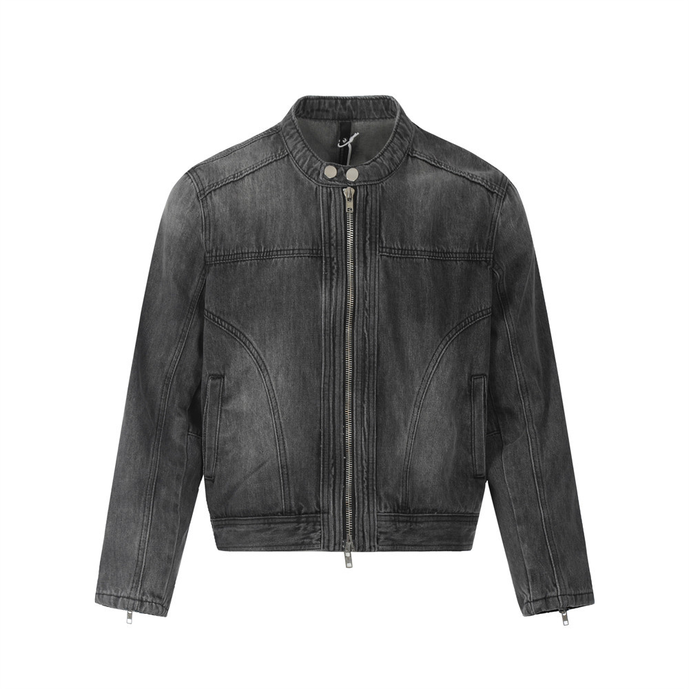 水洗いして古いデニムのショートコートを作ります。男性の春秋高街のデザイン感があります。