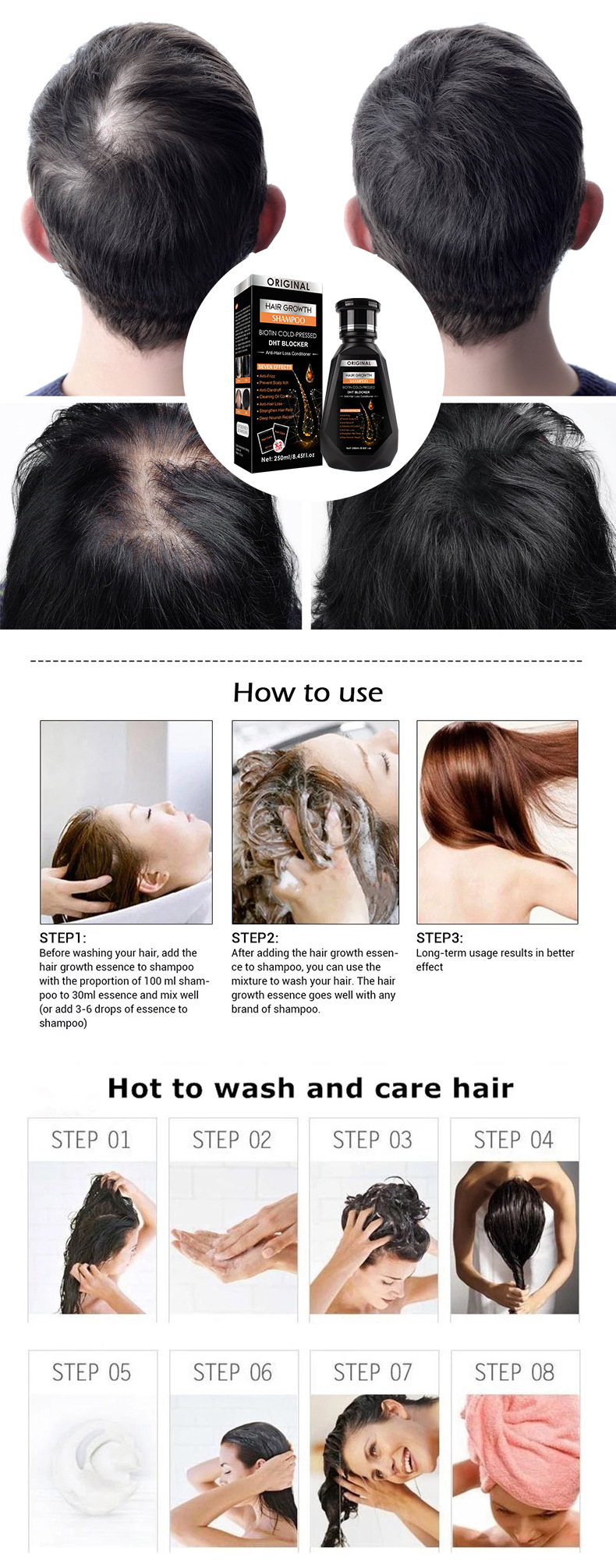 髪に潤いを与え、栄養を与え、髪を強化し、頭皮をかゆみを和らげます。頭皮をリフレッシュし、縮れを改善します。柔らかく滑らかで、枝毛を防ぎます。