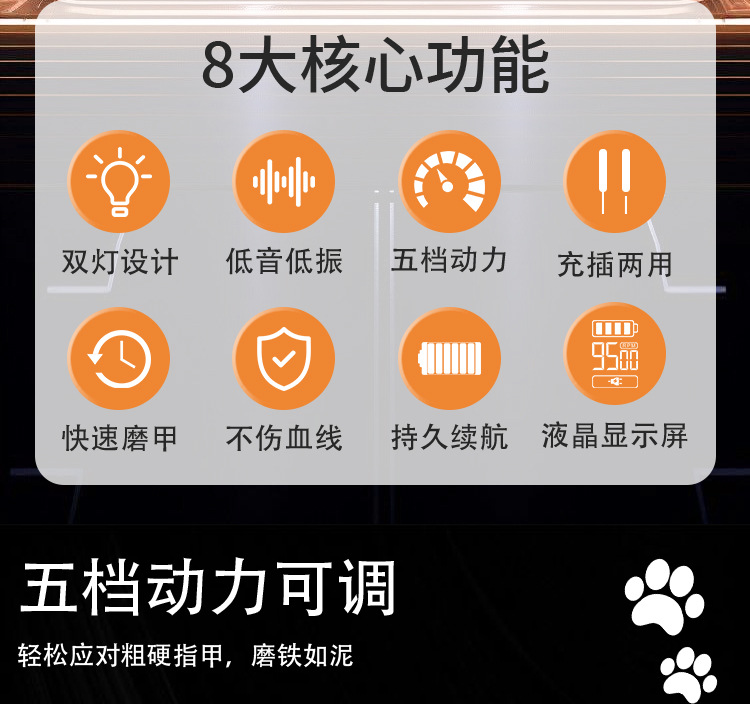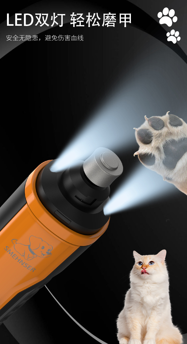 跨境新品宠物磨甲器电动修甲器无影灯电动猫狗指甲剪狗狗磨甲器