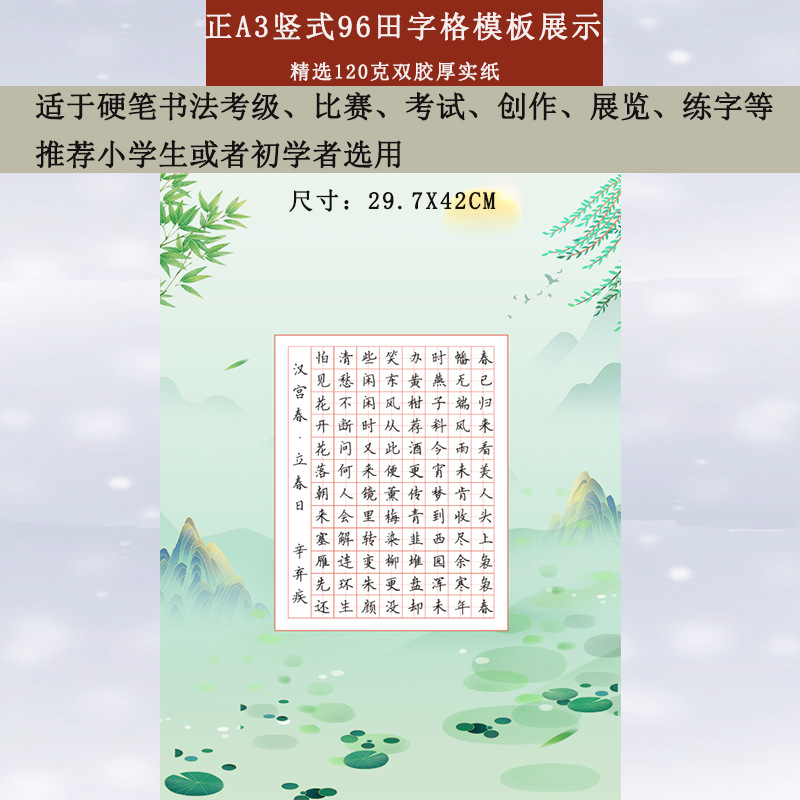 【用途】用于考试,比赛,考级,展览,书写,练习,练字