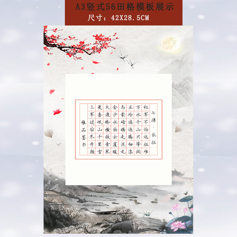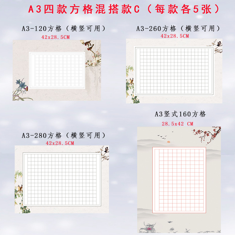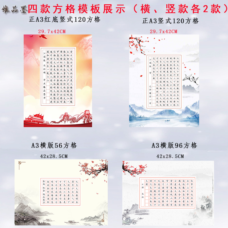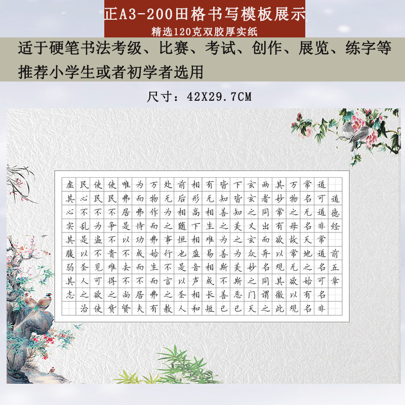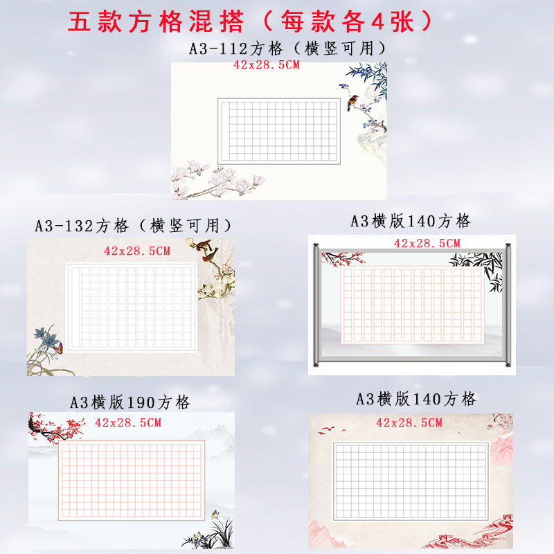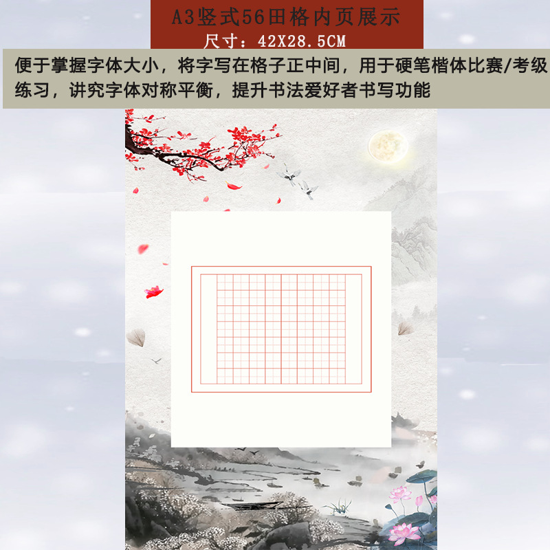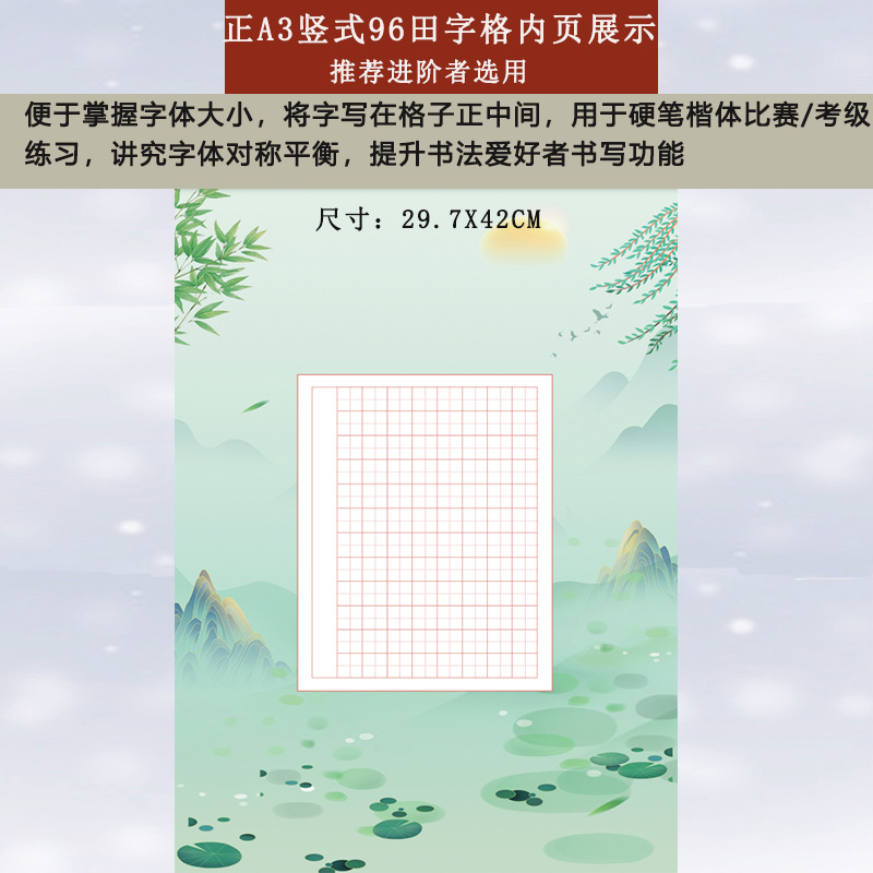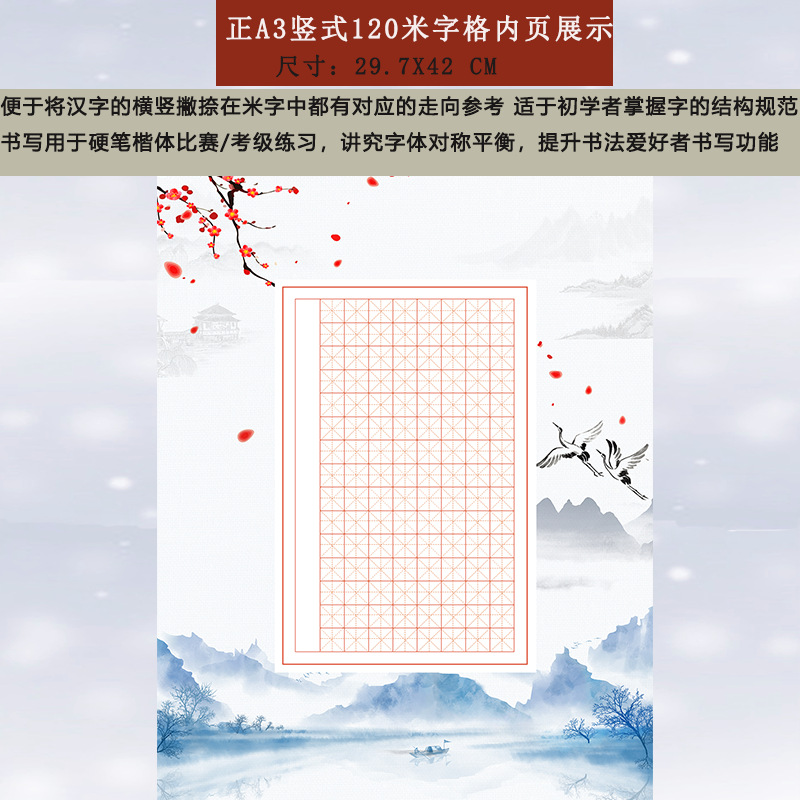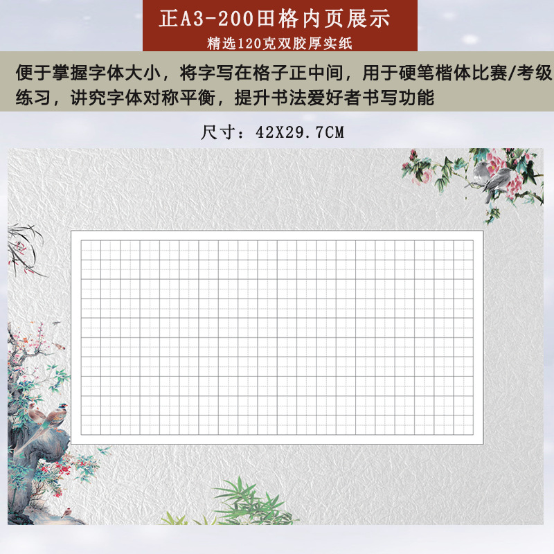 【名称】A4硬笔书法纸 [ 尺寸]21x29.7/21x28.5cm 【格子大小】1.5x1.5cm