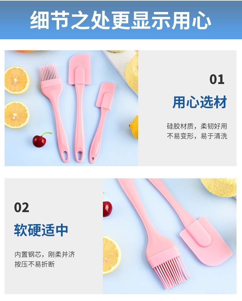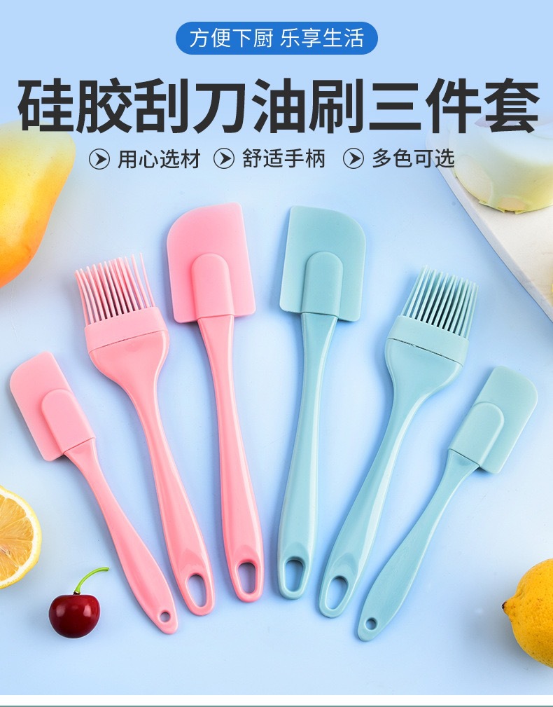 现货批发硅胶刮刀3件套 奶油刮铲油刷三件套烘焙工具硅胶刷套装