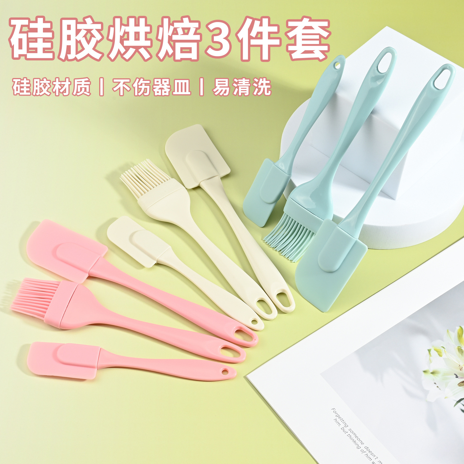クロスボーダー新作ベーキングシリコンスパチュラ3点セット、ベーキングオイルブラシ、ケーキスパチュラ3点セット、在庫あり