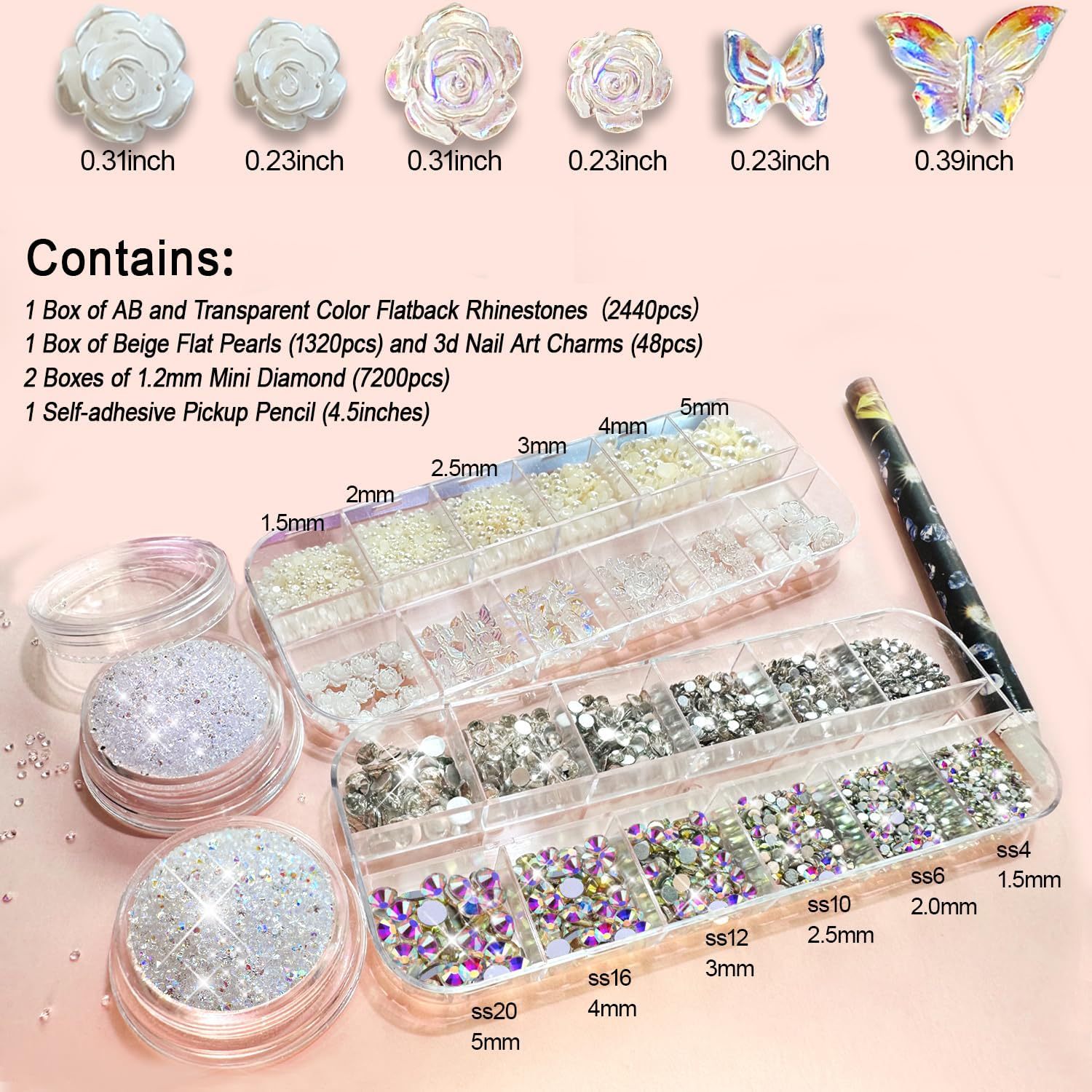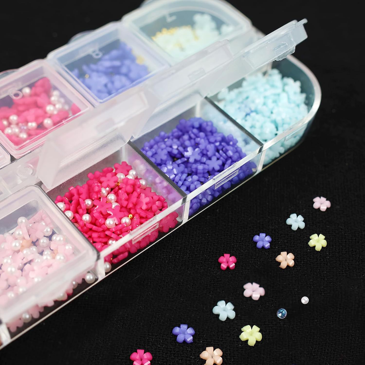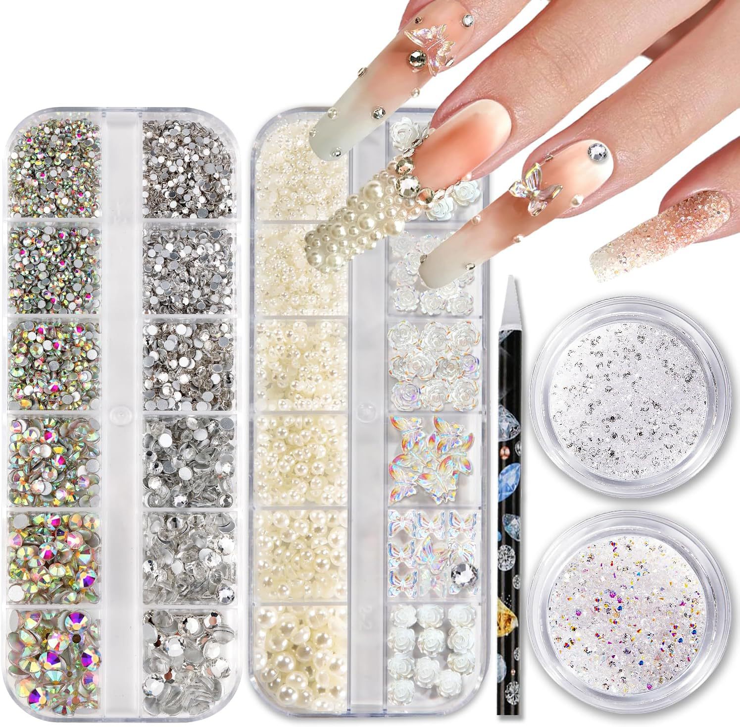 日系12格小珍珠美甲饰品平底半圆形轻奢盒装大小白色珍珠美甲饰品
