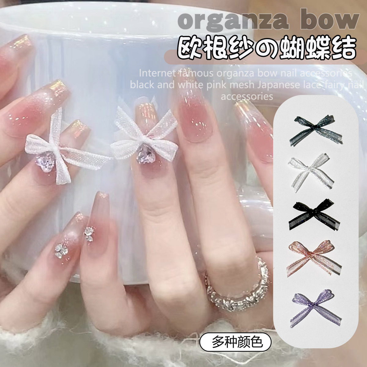 ネットの赤い爆発金の欧根紗の蝶結びのネイルアクセサリーのレースの布芸のアンドロメダ風は甲の爪のアクセサリーの卸売りを着ます。
