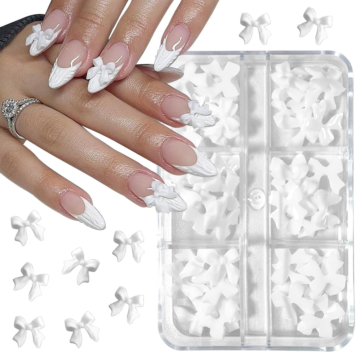 跨境新款24格美甲合金饰品树脂蝴蝶结软胶冰雕花立体花朵水钻混装