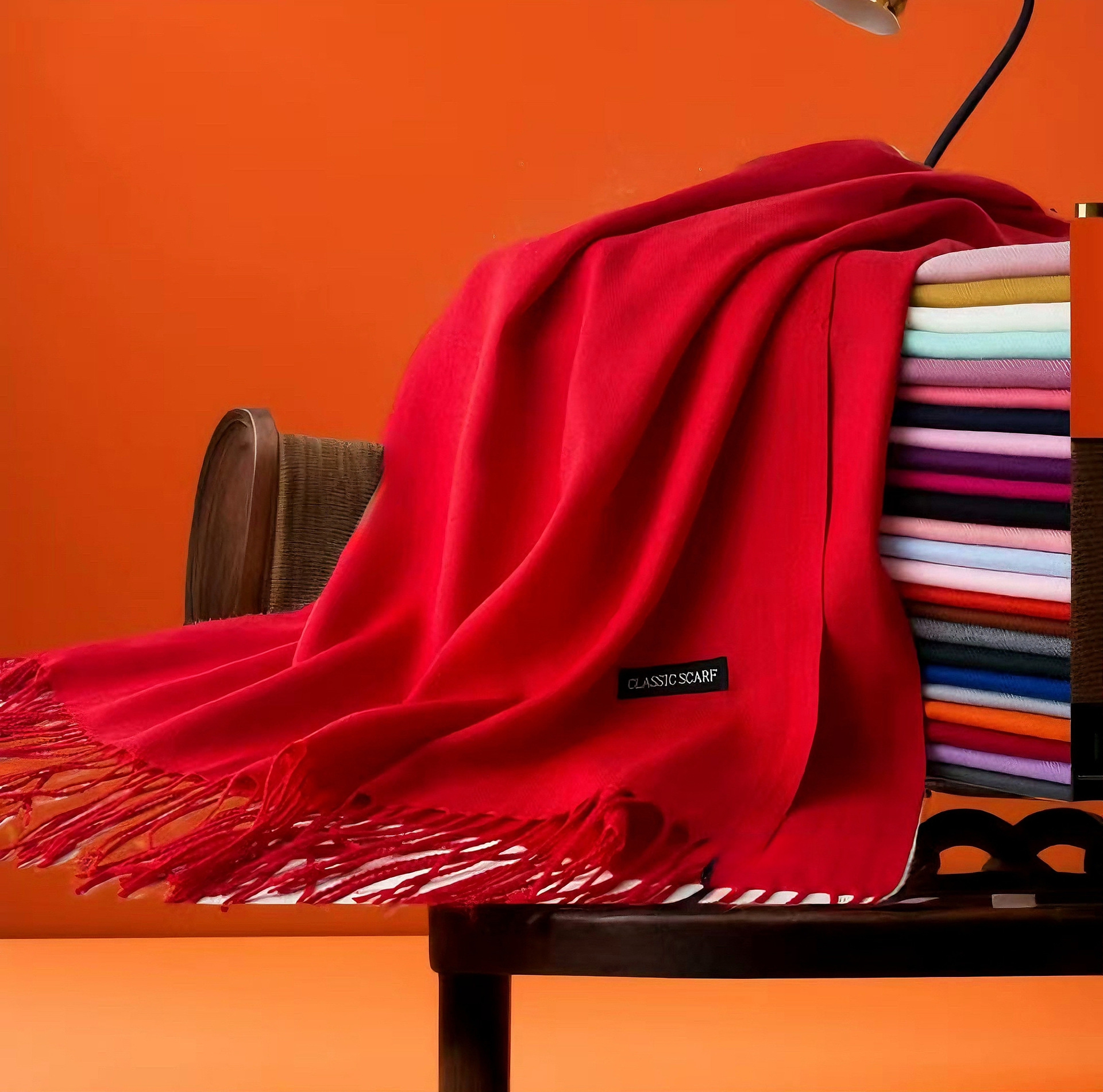 大きな赤いスカーフ年次総会ギフト中国の赤いスカーフイベントオープニング無地模造カシミヤショールロゴ刺繍生産