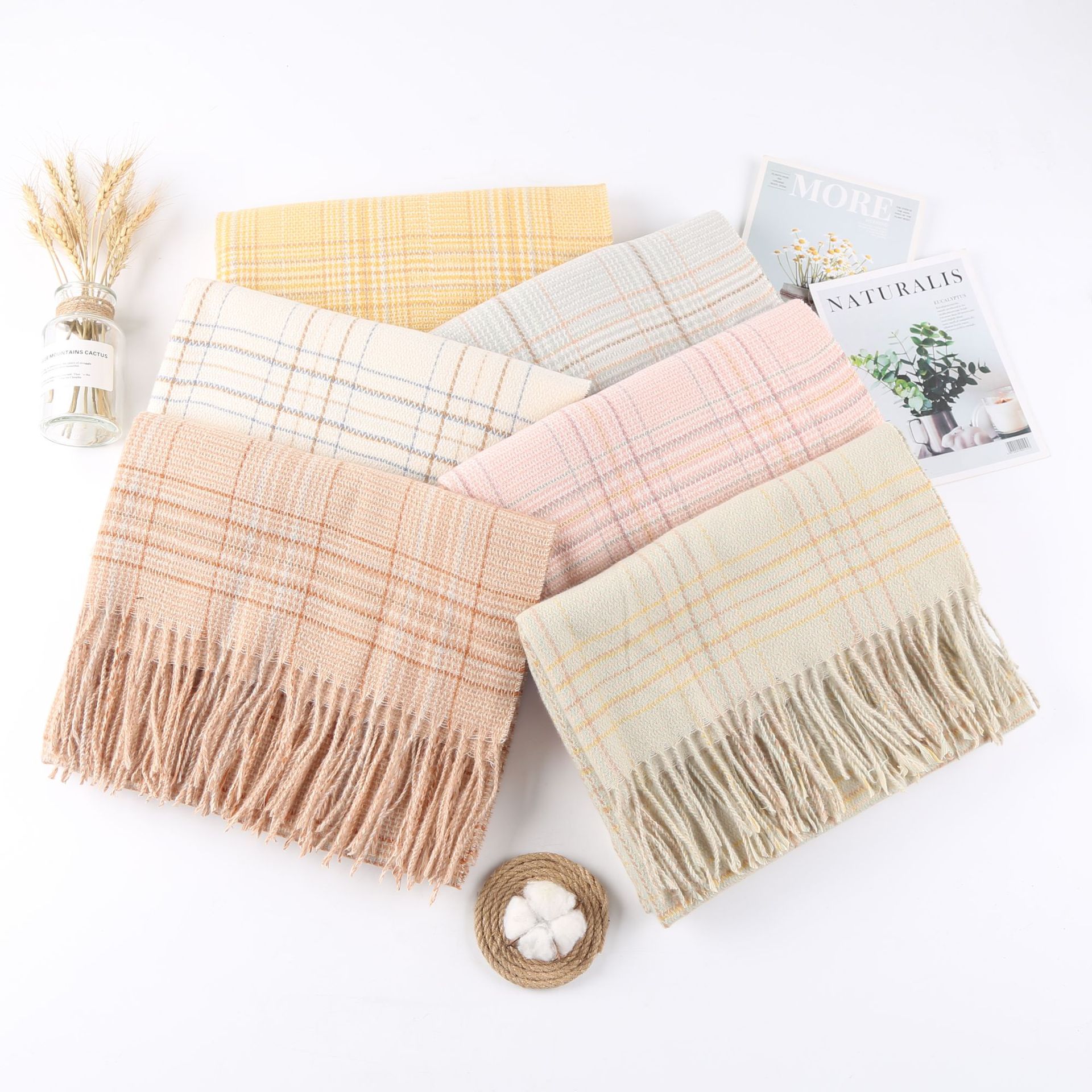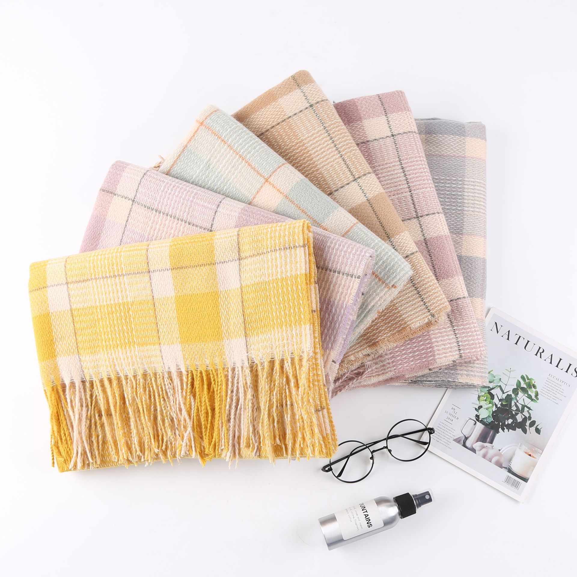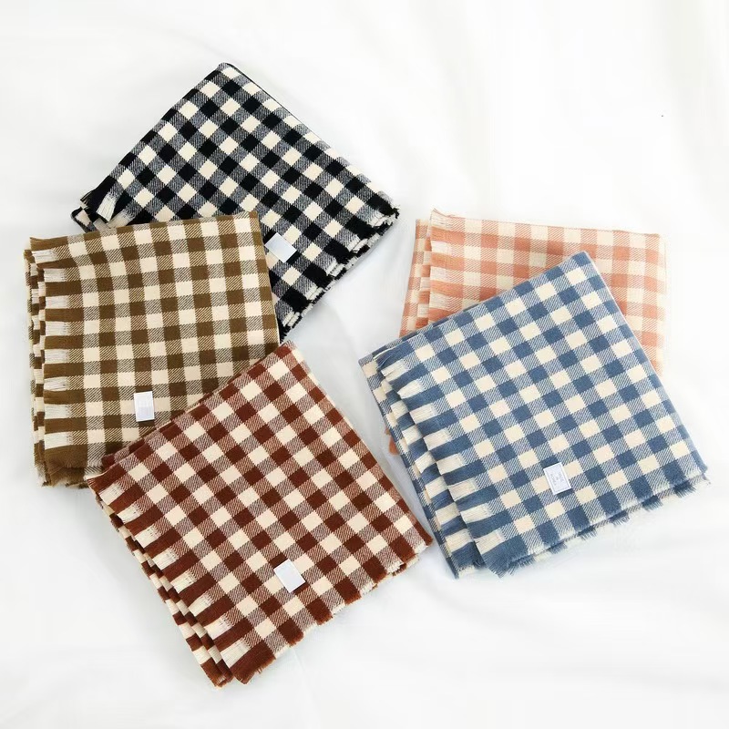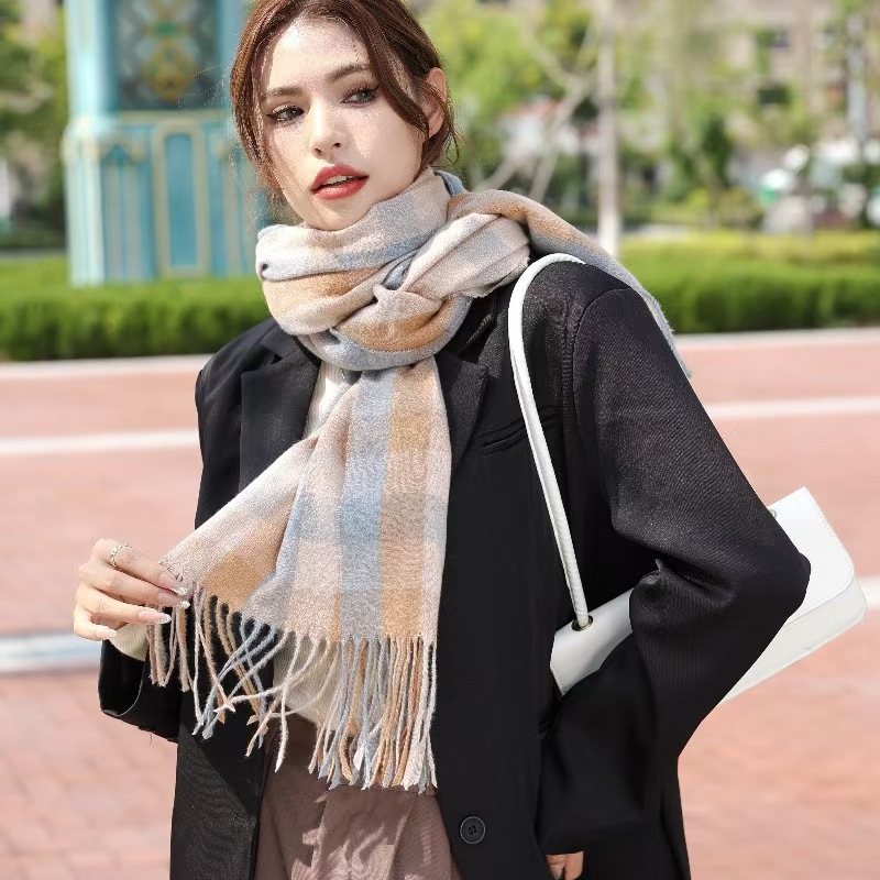 韓国版百合学生が首を囲んでいるins潮文芸格子マフラーの女性秋冬はカシミヤ2024保温ストールに似せている