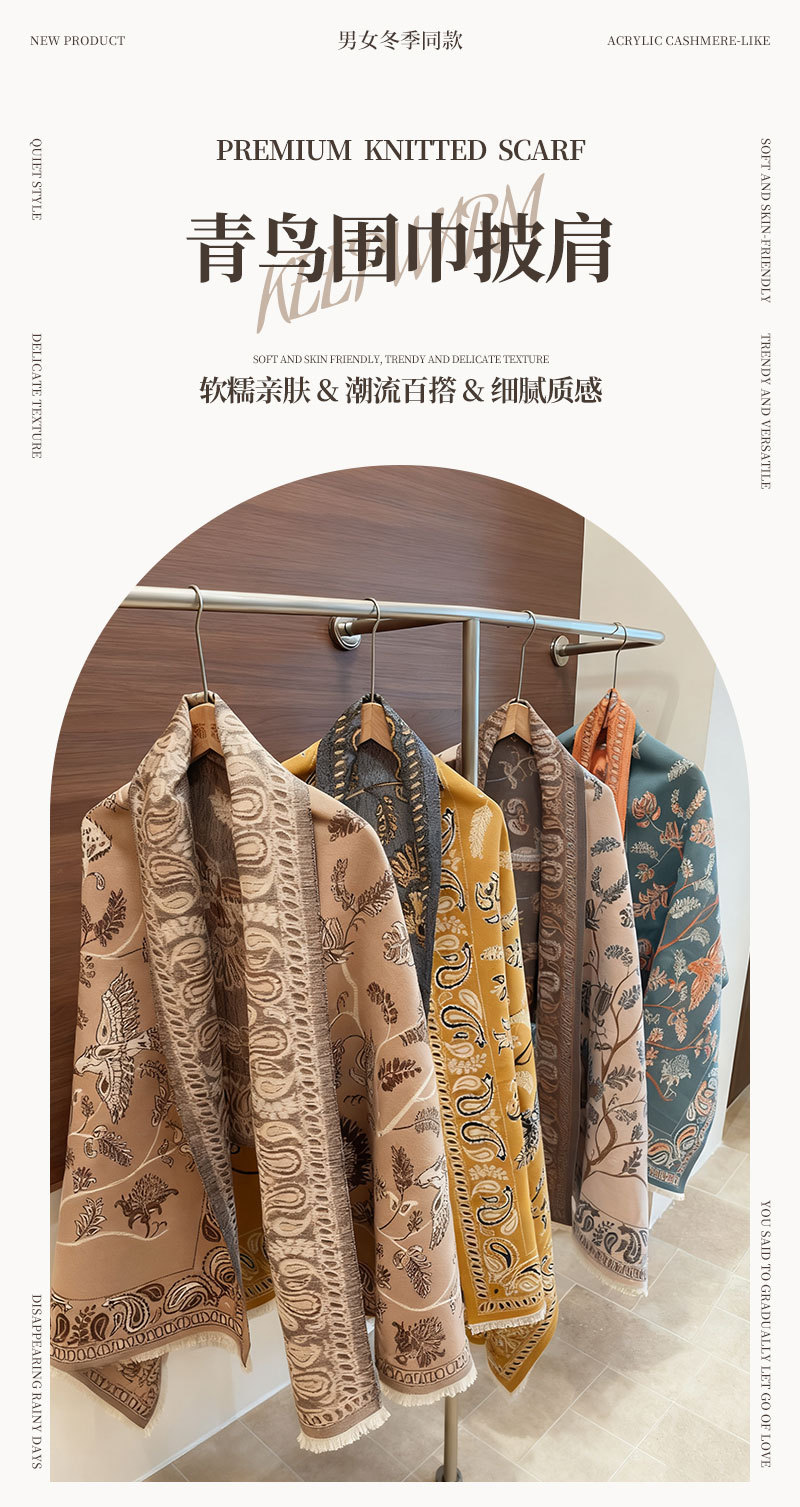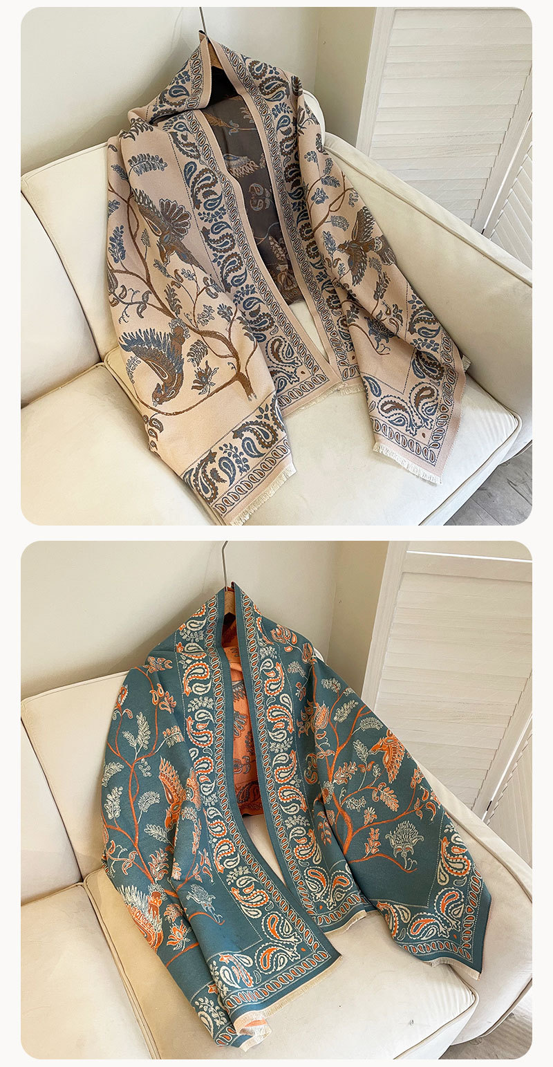 模造カシミヤブルーバードカシューツリースカーフショール兼用女性の秋と冬のアウターウェア夏オフィス空調昼寝ブランケット