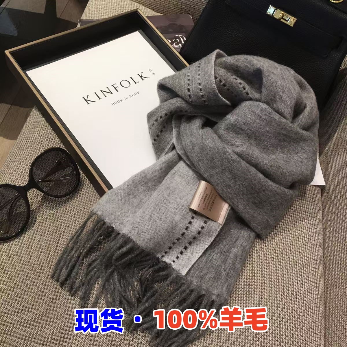 百搭100%WOOL纯羊毛围巾女纯色缝线设计双面羊毛披肩冬季保暖围脖