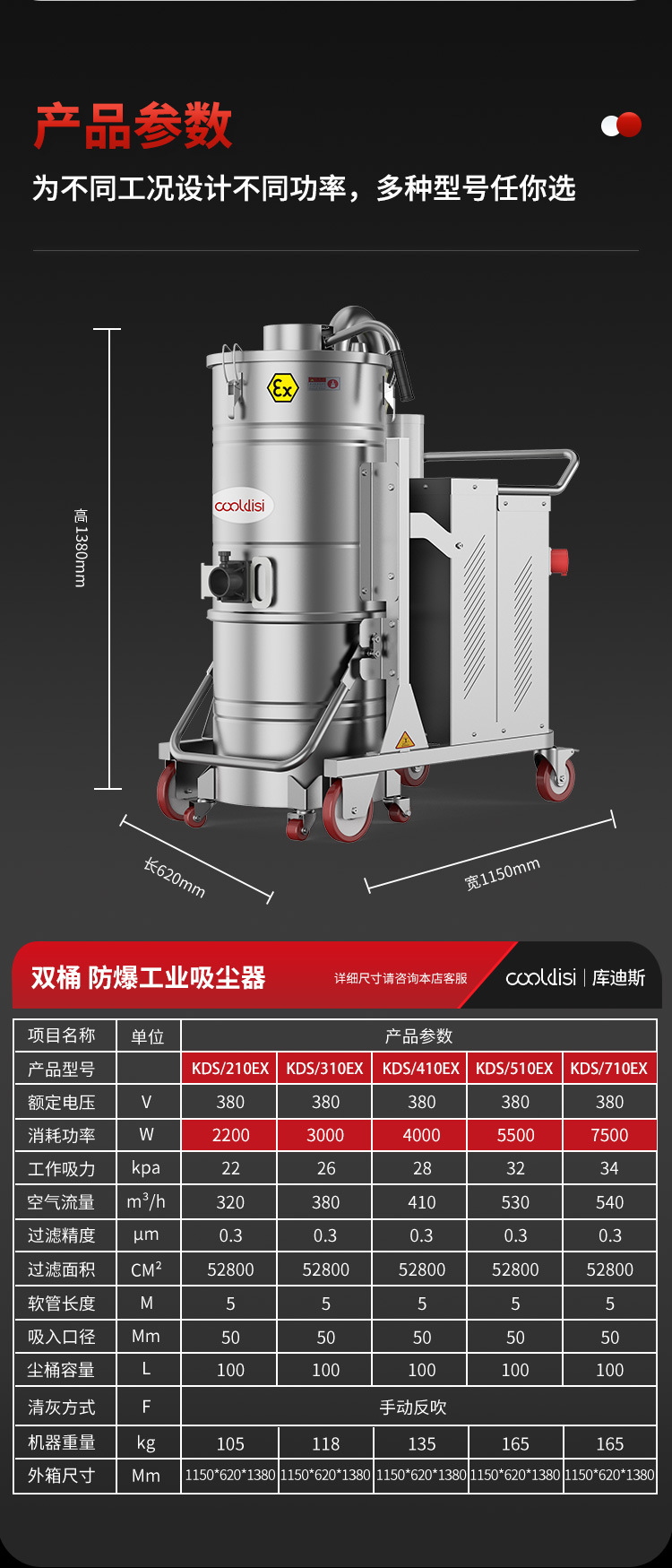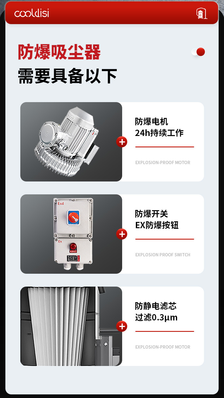 クーディス工業防爆シングルバレル掃除機強吸引力小麦粉工場炭鉱アルミ工場用粉塵粒子掃除機