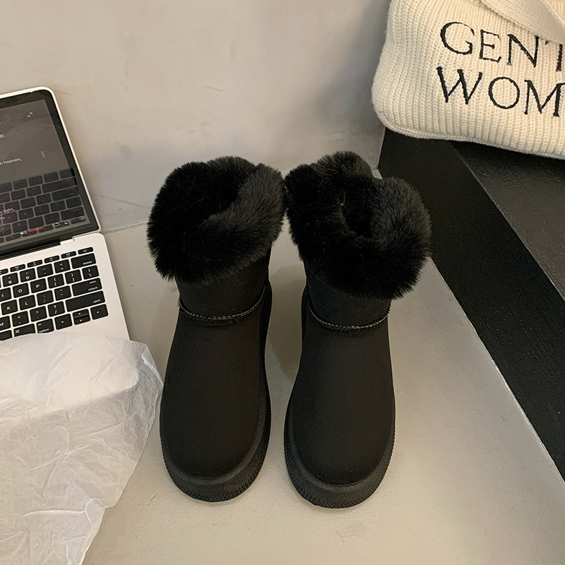 2024年秋冬スエードファッションブラウンレトロローカット人工毛皮デイリーラウンドトゥソリッドカラーコットンシューズ