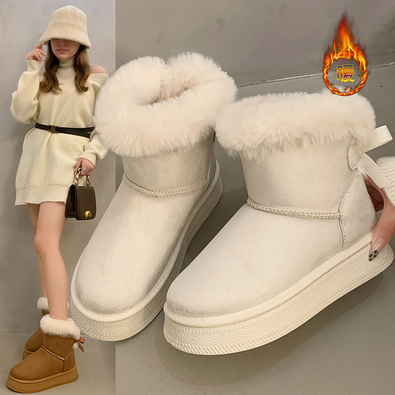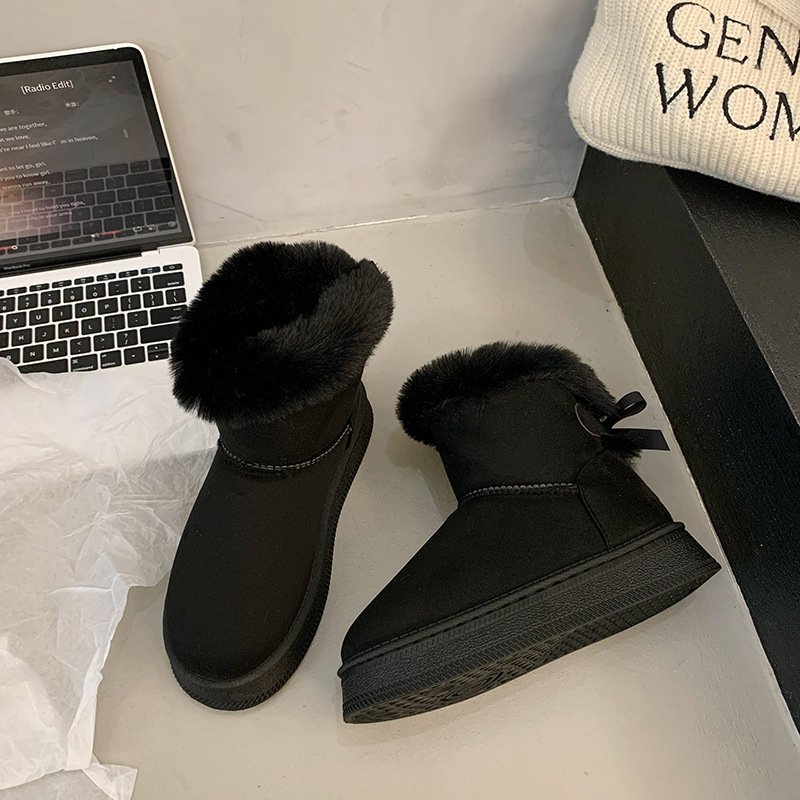 外国貿易クロスボーダー雪地靴女性毛口蝶結び飾りシンプルカジュアル女性雪地靴厚い底滑り止め綿靴