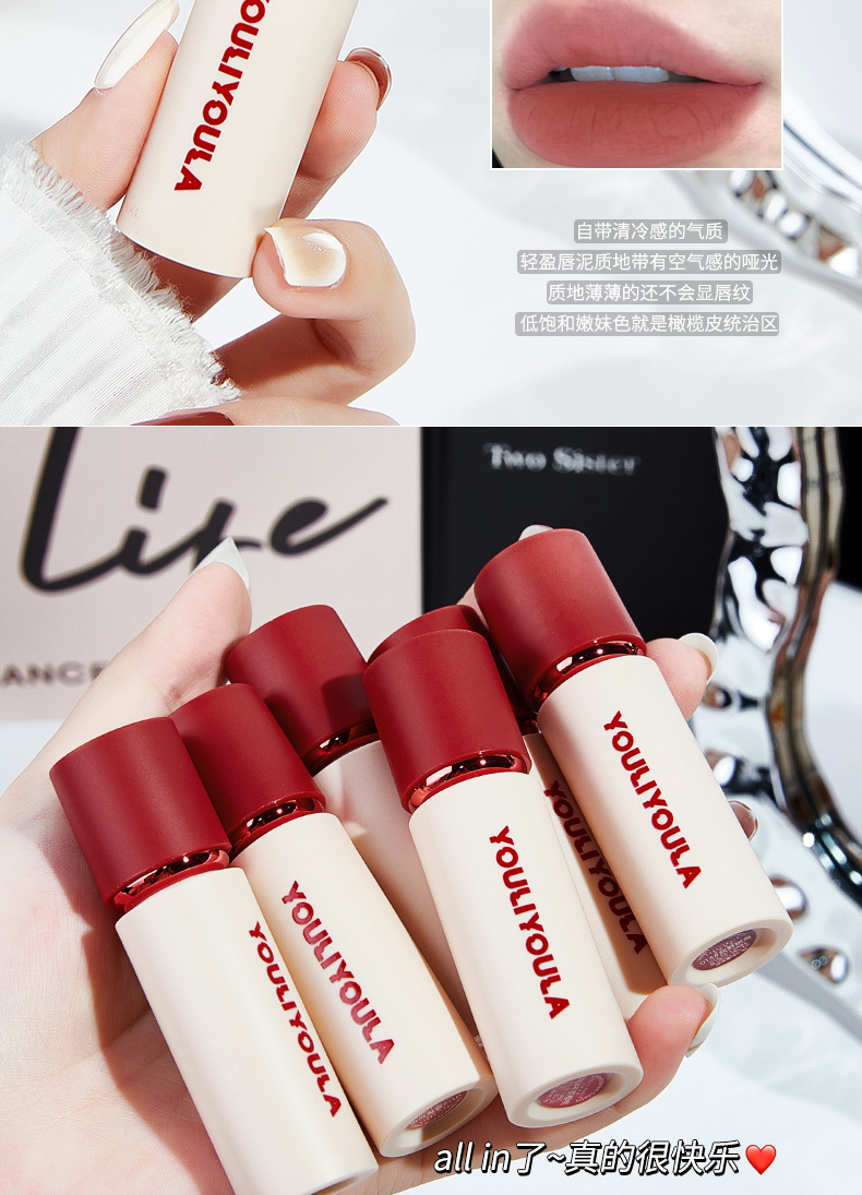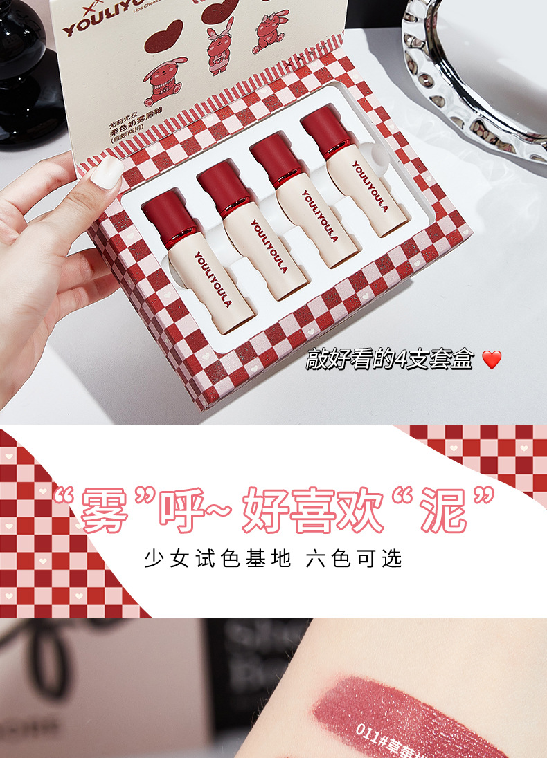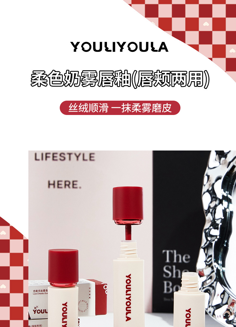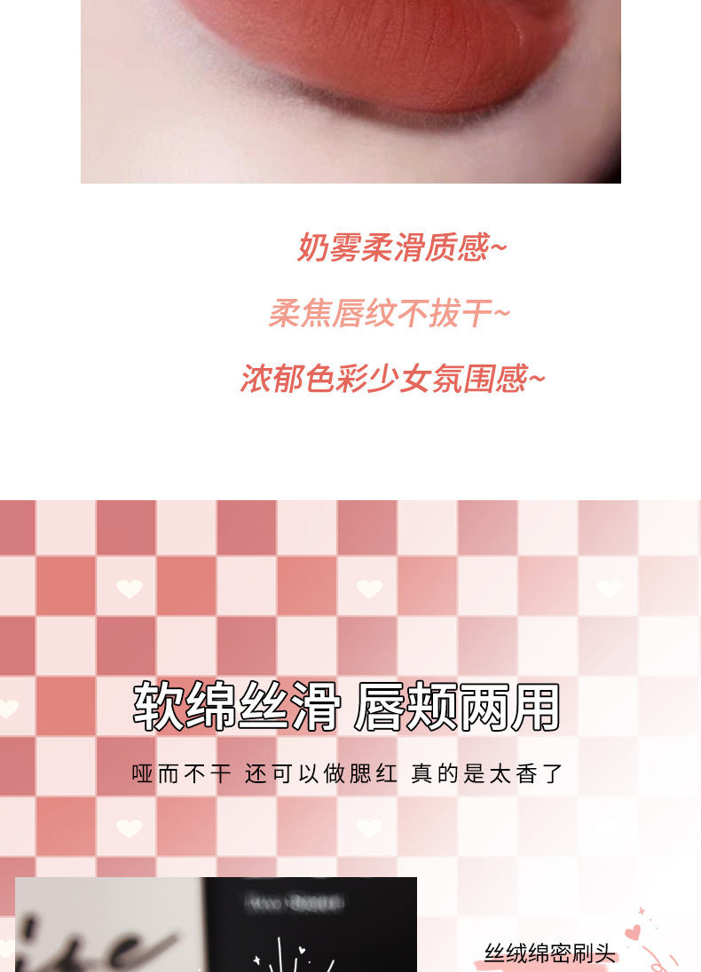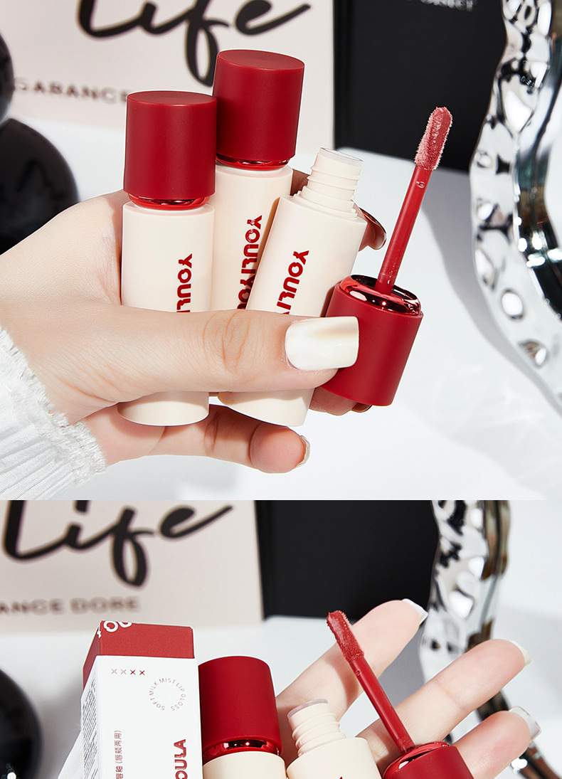 ユリユラの柔らかい色の乳の霧の唇の釉薬のベルベットの滑らかな唇の頬の両用のすっぴんの白い雰囲気感のチークの口紅