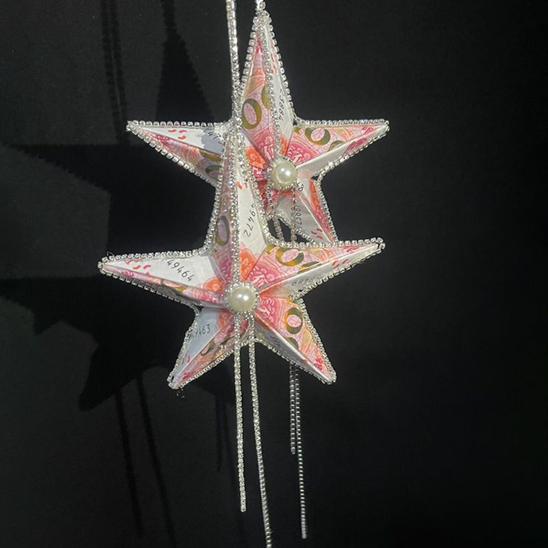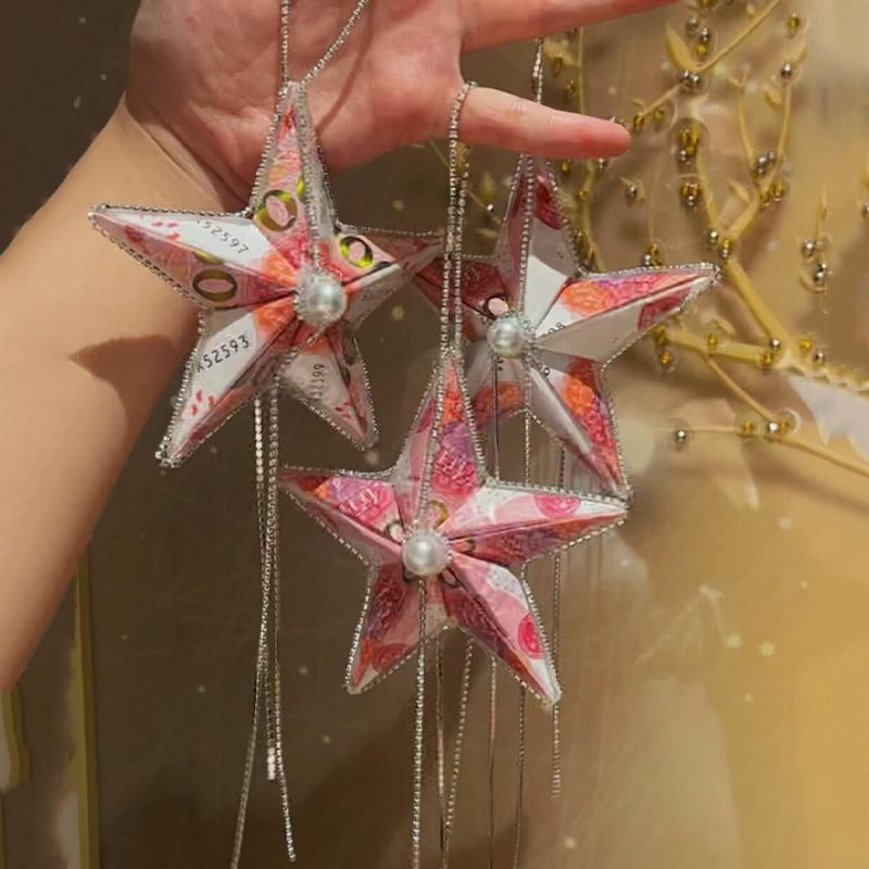 シンプルでロマンチックな手作りのお金があるラッキースターの車にdiy材料を掛けて誕生日プレゼントをプレゼントします。