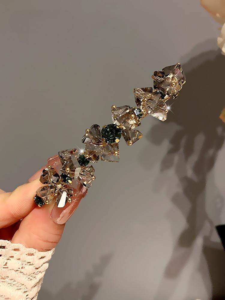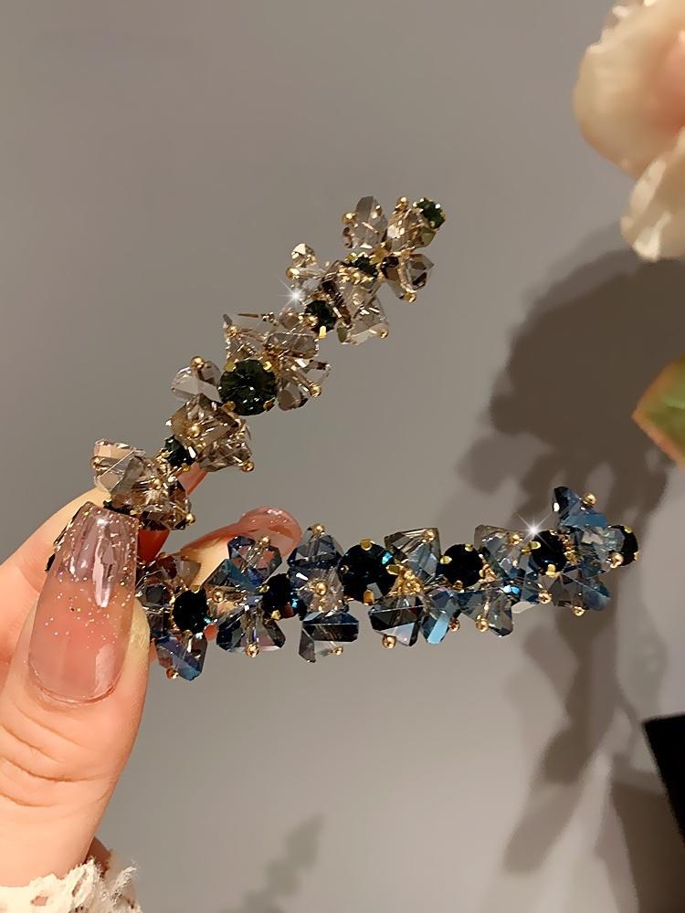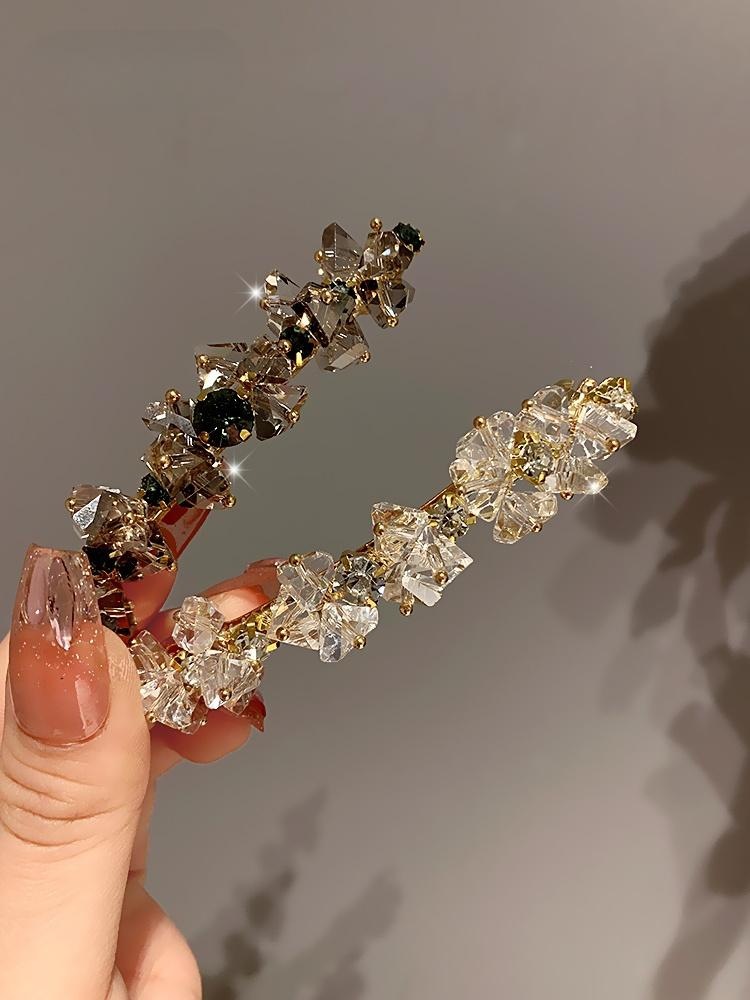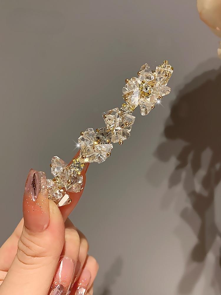 シャンパンカラーの美しいリボンクリスタルエッジクリップ韓国のハイエンドの絶妙なラインストーンヘアピン