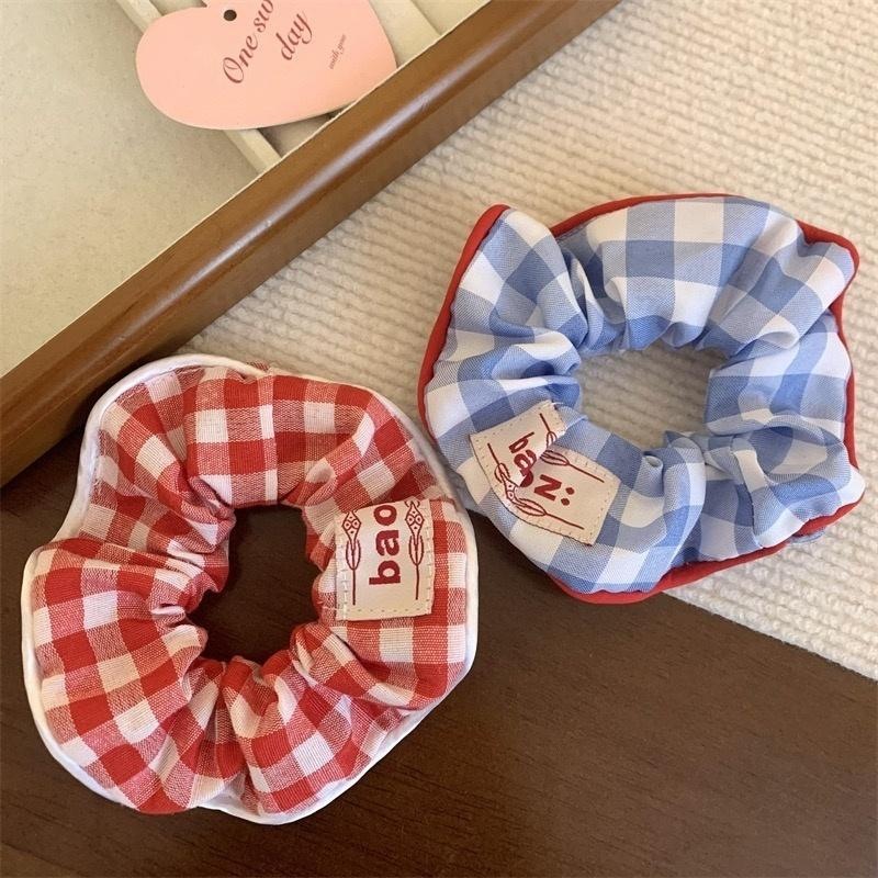 韓国版のかわいい赤い青い格子縞の髪輪の女性の清新で甘い髪飾りの新型のひもの皮の筋の大きい腸の輪の髪飾り