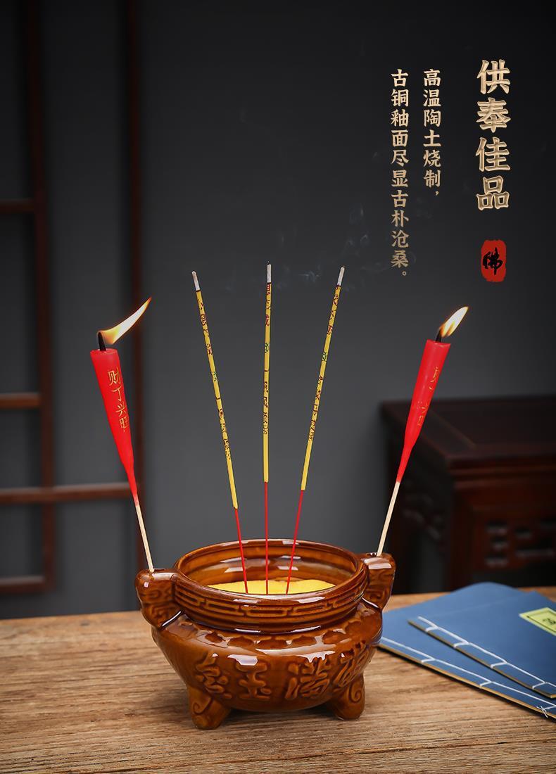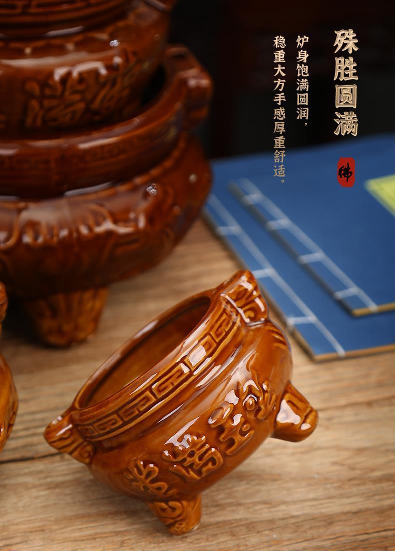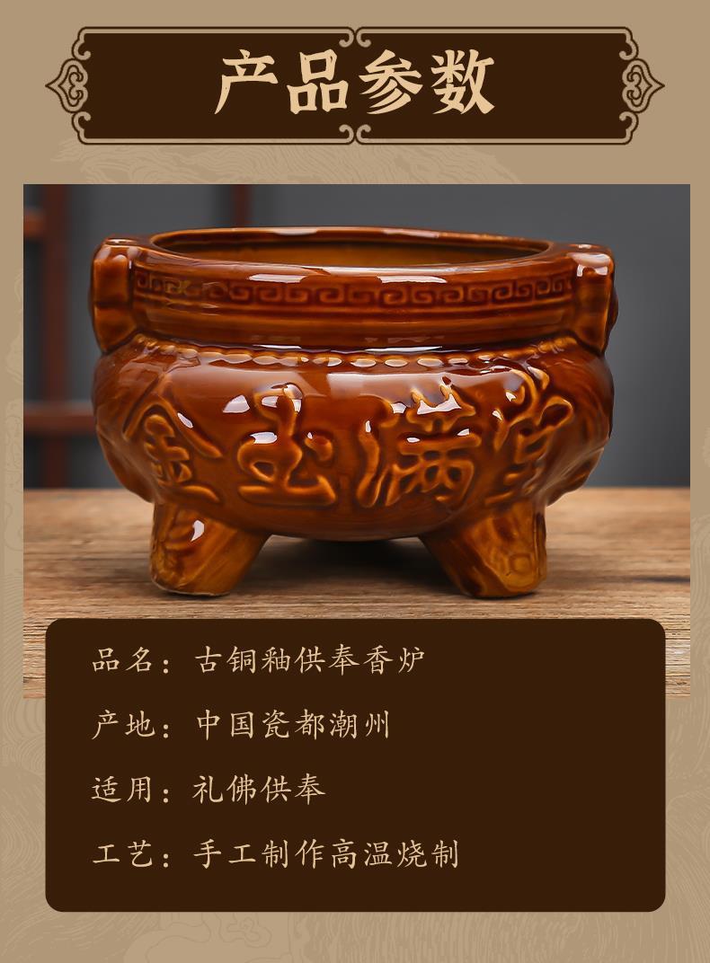 メーカー卸売り陶磁器古銅色釉薬香炉祠堂挿香室内上香家庭用供養仏仏具用品